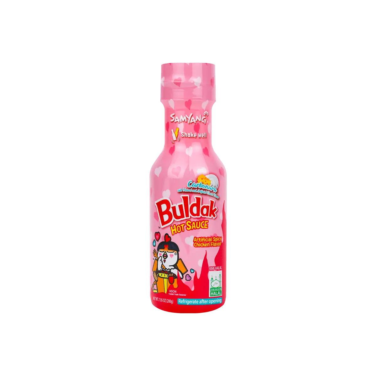 Turn up the heat with SAMYANG’s famous Buldak Carbonara Sauce! A creamy twist on the iconic fire chicken flavor, this rich and spicy Korean sauce blends bold gochujang heat with smooth cheesy carbonara goodness. Perfect for noodles, pasta, rice, or dipping – just one spoon and you’ll be hooked!