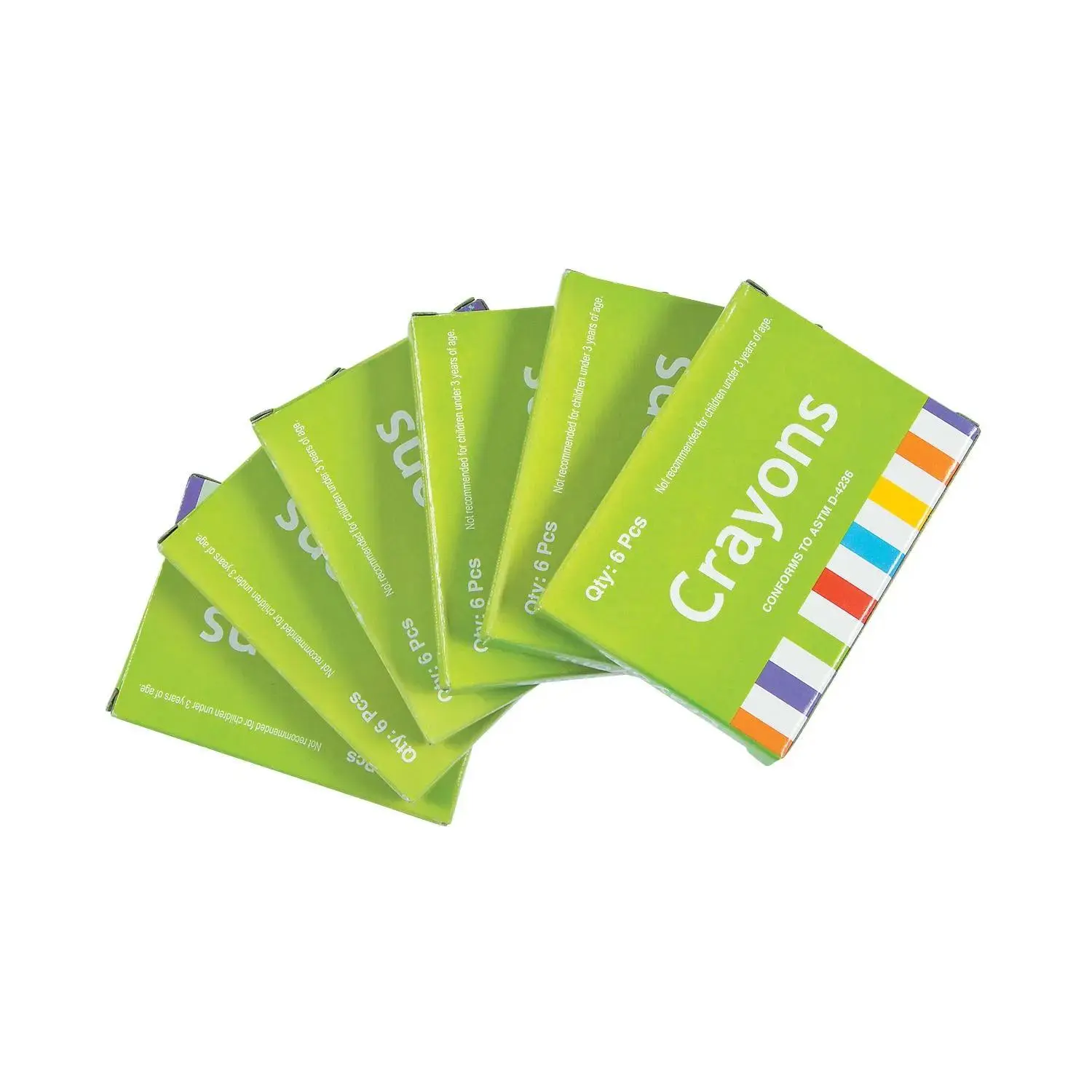 These crayons pass the amazingness test with flying colors! Use them to add a vibrant rainbow to any of you or your childrenâs paper crafts. The set includes 48 boxes and each box holds 6 crayons in assorted colors. They're great giveaways for parties and nice to have in your school supply kit. Plus, this bulk supply will ensure you have enough crayon boxes to pass out during any size of event. © OTCbr