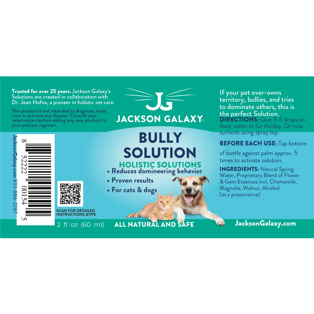 If your cat is a “Napoleon Cat” who, convinced that they have to over-own the territory, bullies and tries to dominate others? If so, this is the solution for you. Jackson’s unique blend of flower essences come together to create a holistic remedy that energetically helps your bully relax and allow others to go about their business in peace.