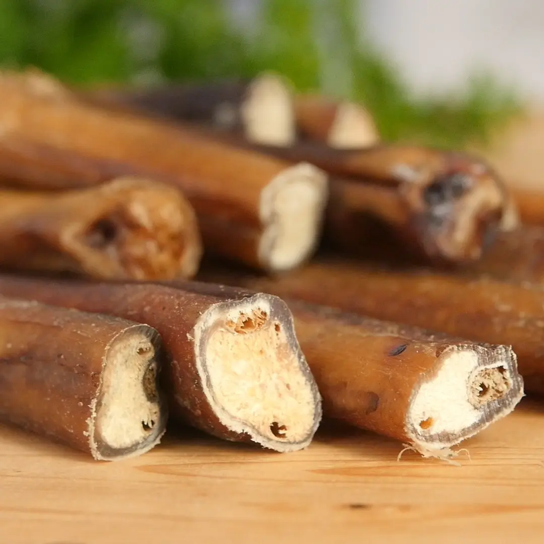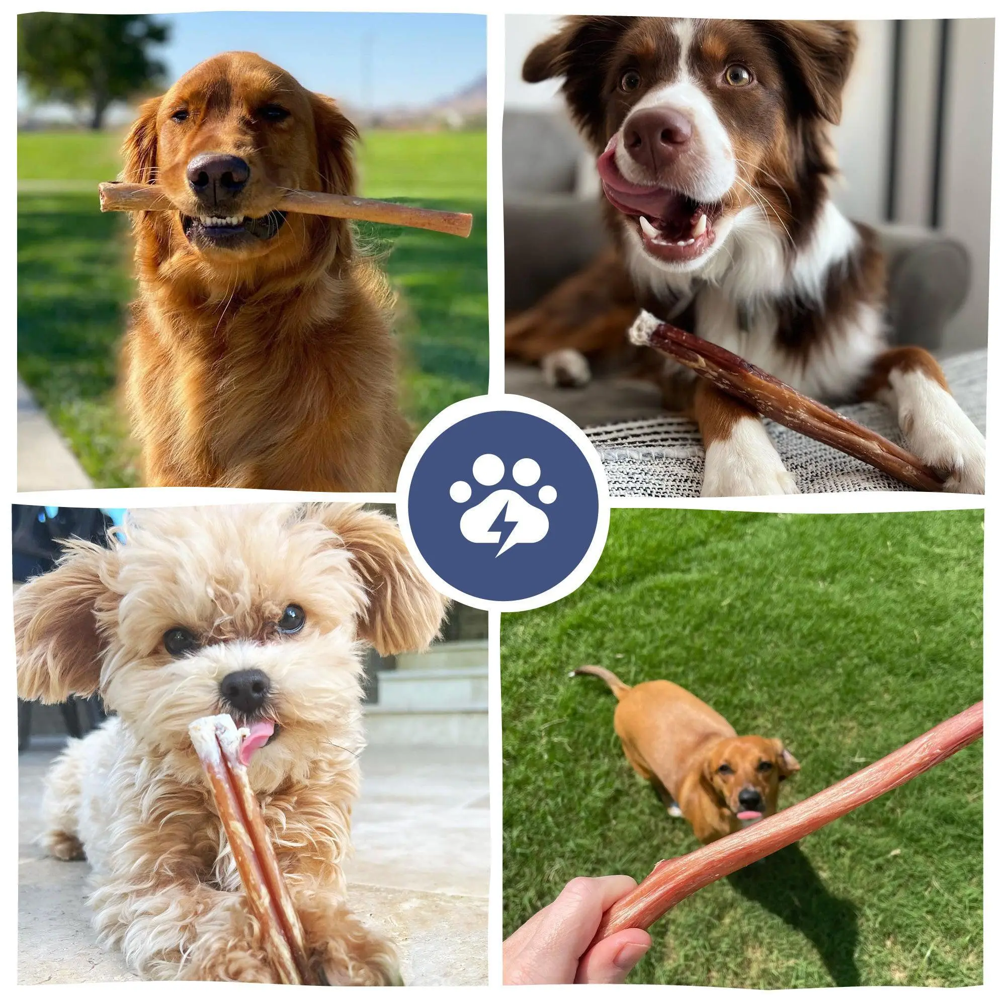 We prioritize your dog's well-being, so you can trust that our bully sticks are free of additives and chemicals. We're committed to delivering only the finest and safest products for your beloved pets. You can have peace of mind knowing that all our beef dog treats and chews are sourced exclusively from high quality South American cattle, aligning with ethical and sustainable practices. This approach ensures the ultimate quality in every bully stick, satisfying even the pickiest canine taste buds.