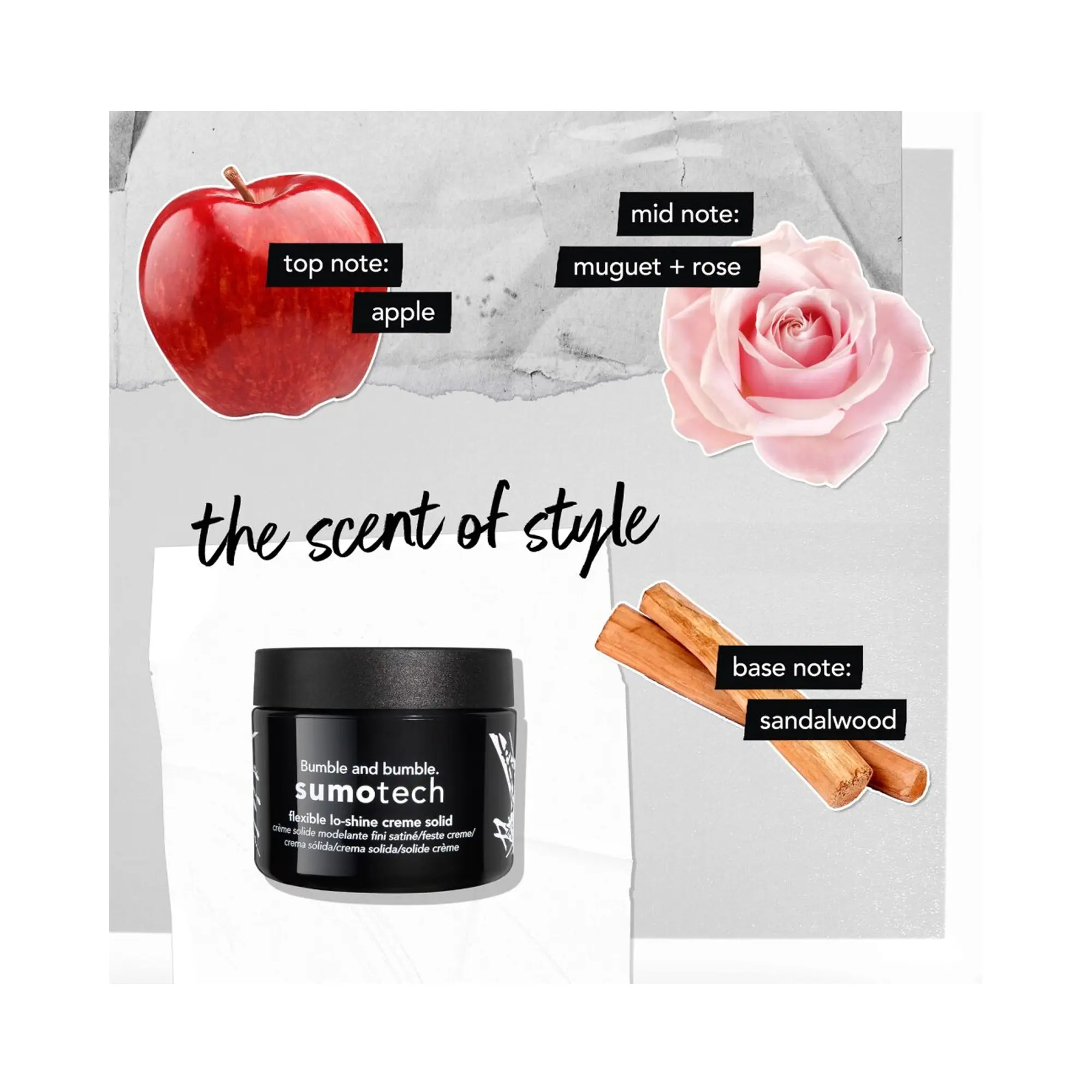 Bumble and bumble's Sumotech is a flexible cream solid, combining wax, paste, and cream. This unique formula offers a pliable texture with a low-shine finish. Perfect for styling short hairstyles, it enhances your hair effortlessly. Ideal for various hair types, Sumotech suits all density levels. It works well on straight to wavy hair, healthy, dry, damaged, and color-treated hair. The versatile formula adapts to different textures, ensuring a styling solution for all.