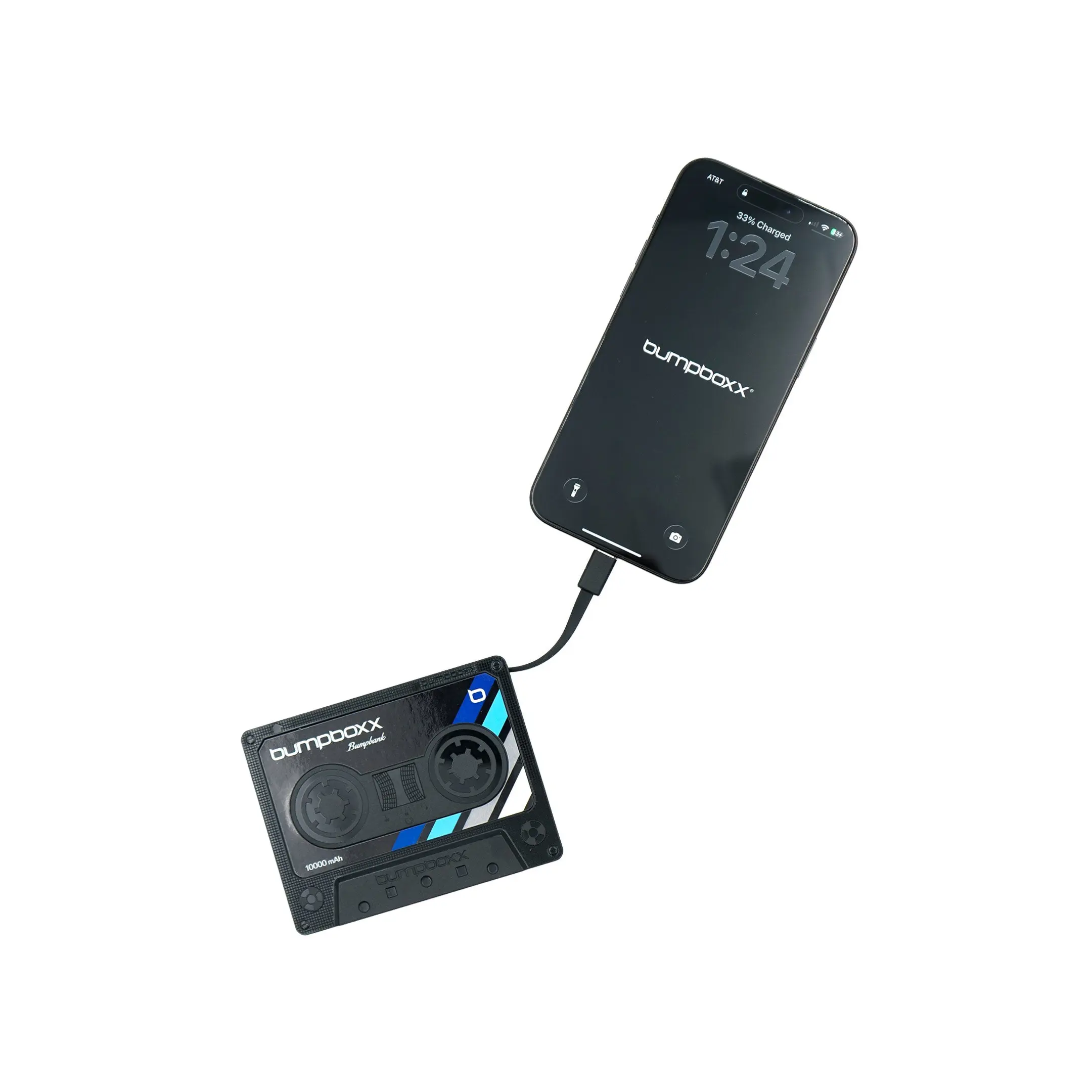 Meet the Bumpboxx Bumpbank: a portable power bank that’s as cool as it is practical. Styled like a vintage cassette tape and packaged in a classic jewel case, it’s a perfect blend of retro vibes and modern convenience. With a battery life meter LED, built-in Type-C and Lightning cables, and the ability to charge your device twice on a single charge, the Bumpbank keeps you powered up with timeless style.