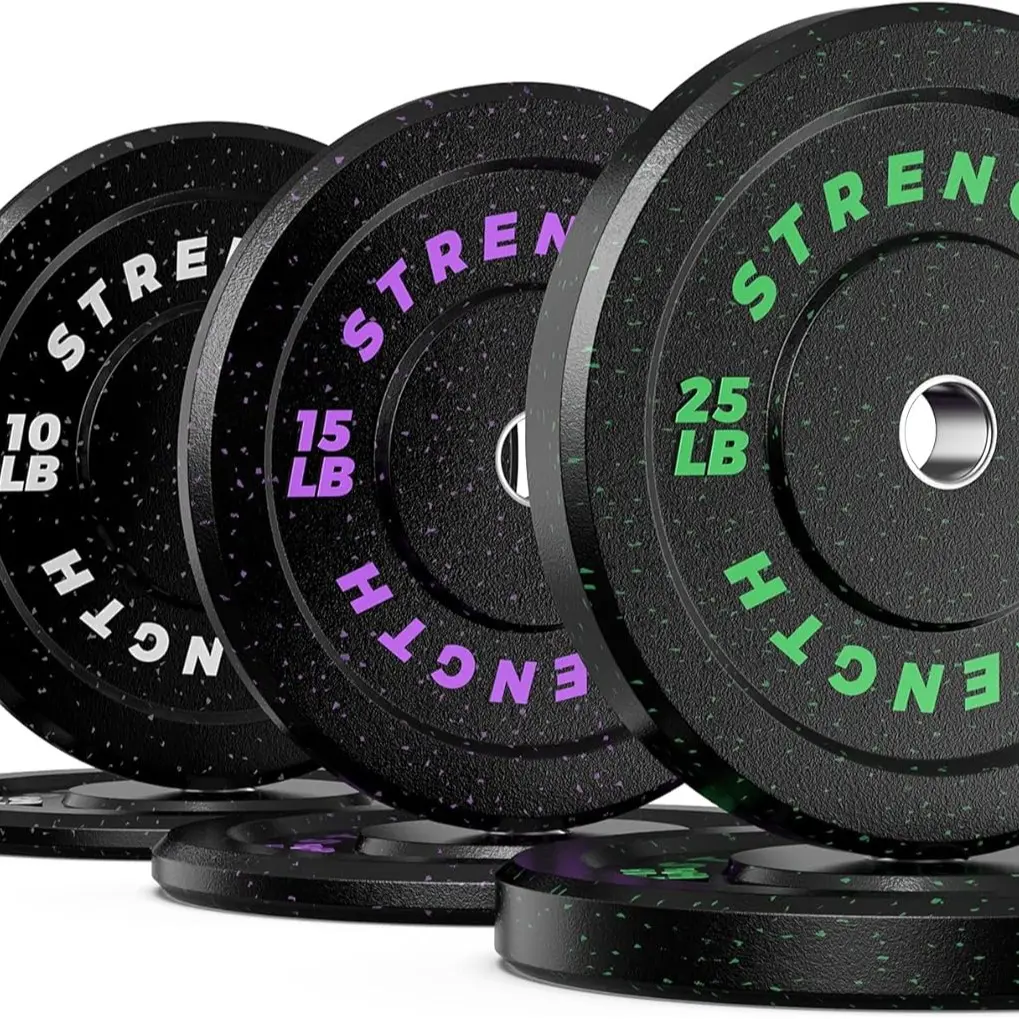 Groups of 𝐎𝐥𝐲𝐦𝐩𝐢𝐜 𝐖𝐞𝐢𝐠𝐡𝐭 𝐏𝐥𝐚𝐭𝐞𝐬: Our upgraded bumper plates are made from recycled rubber with stainless steel inner rings, odorless and resistant, with a 2-inch center hole. Compared to steel plates, our bumper plates set are more environmentally friendly, resilient, and safe.