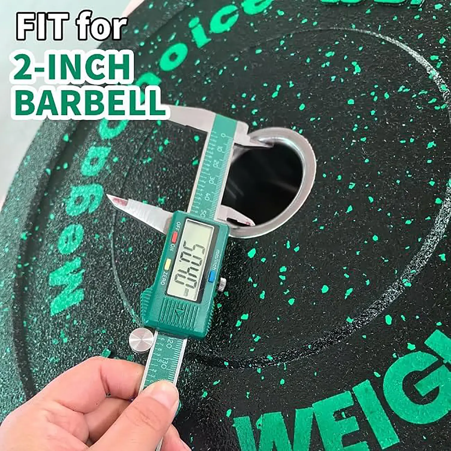-QUICK IDENTIFICATION: Durable rubber construction with color-spotted design makes Olympic weight plates easier to quickly identify and pick up. Stainless steel holes allow for easy sliding on and off of the barbell. Fits standard 2" bars.