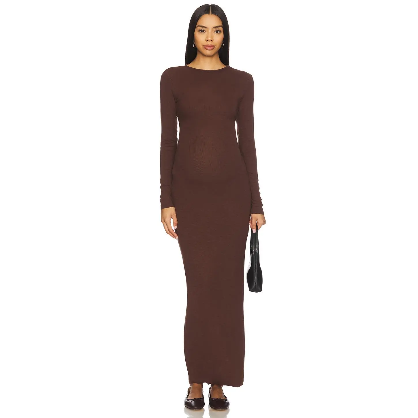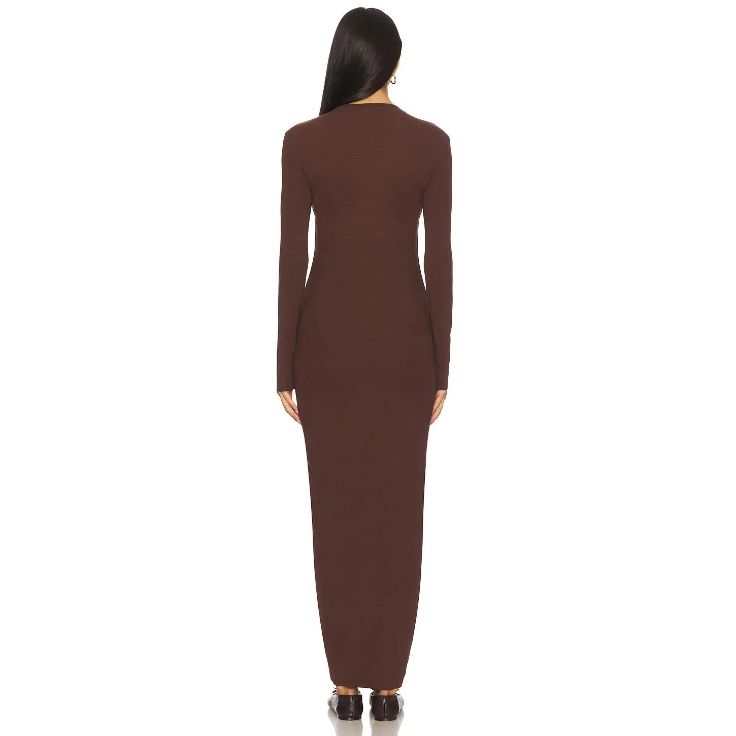 5. BUMPSUIT Soft Rib Maxi Dress in Chocolate