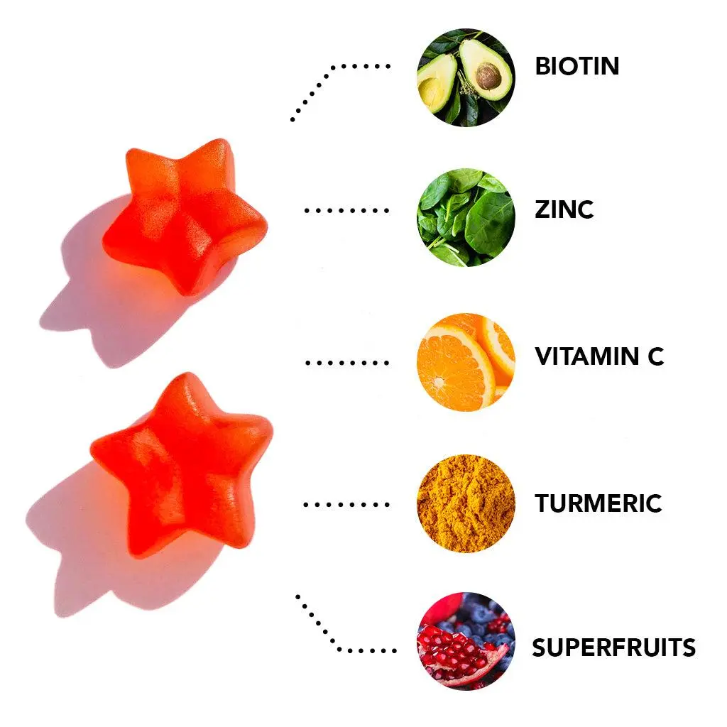 ·Gummy Stars™ are an award-winning and delicious hair nourishing supplement with clinically-studied vegan ingredients to help maintain stronger, longer, thicker-looking hair. Our proprietary blend of essential hair-loving vitamins, minerals and herbs, plus a potent super antioxidant complex synergistically helps promote healthy hair growth, retention and follicle strength from the inside out.*