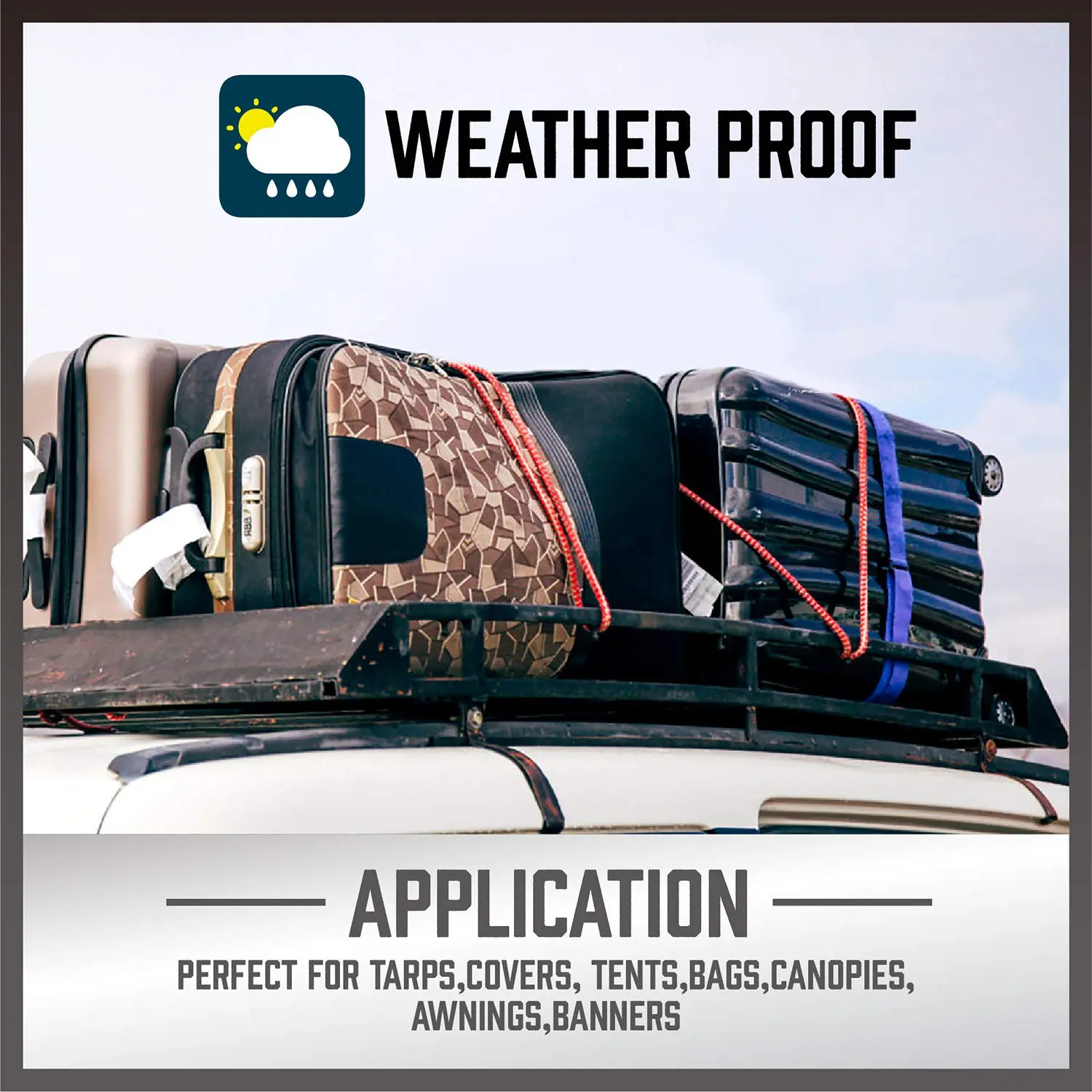 ·【Multiple Sizes】(6) pc. x 18”, (4) pc. x 24”, (2) pc. x 32”, (2) pc. x 40” bungee cords; (6) pc. x 10"mini cords; (4) pc. x 8” canopy ties UV resistant cord jacket; (4) pc Crocodile Mouth Tarp Clips.