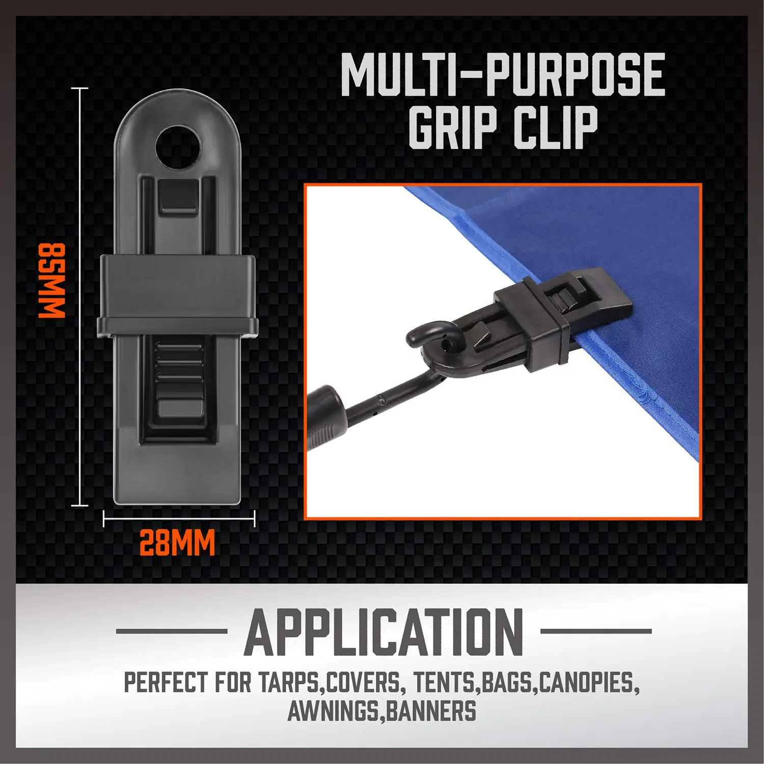 ·【Crocodile Mouth Tarp Clips】Contains 4 tarpaulin clips, which can clamp and release the tarpaulin, and tarpaulins of various thicknesses; the teeth are stable and safe to prevent the tarpaulin from falling
