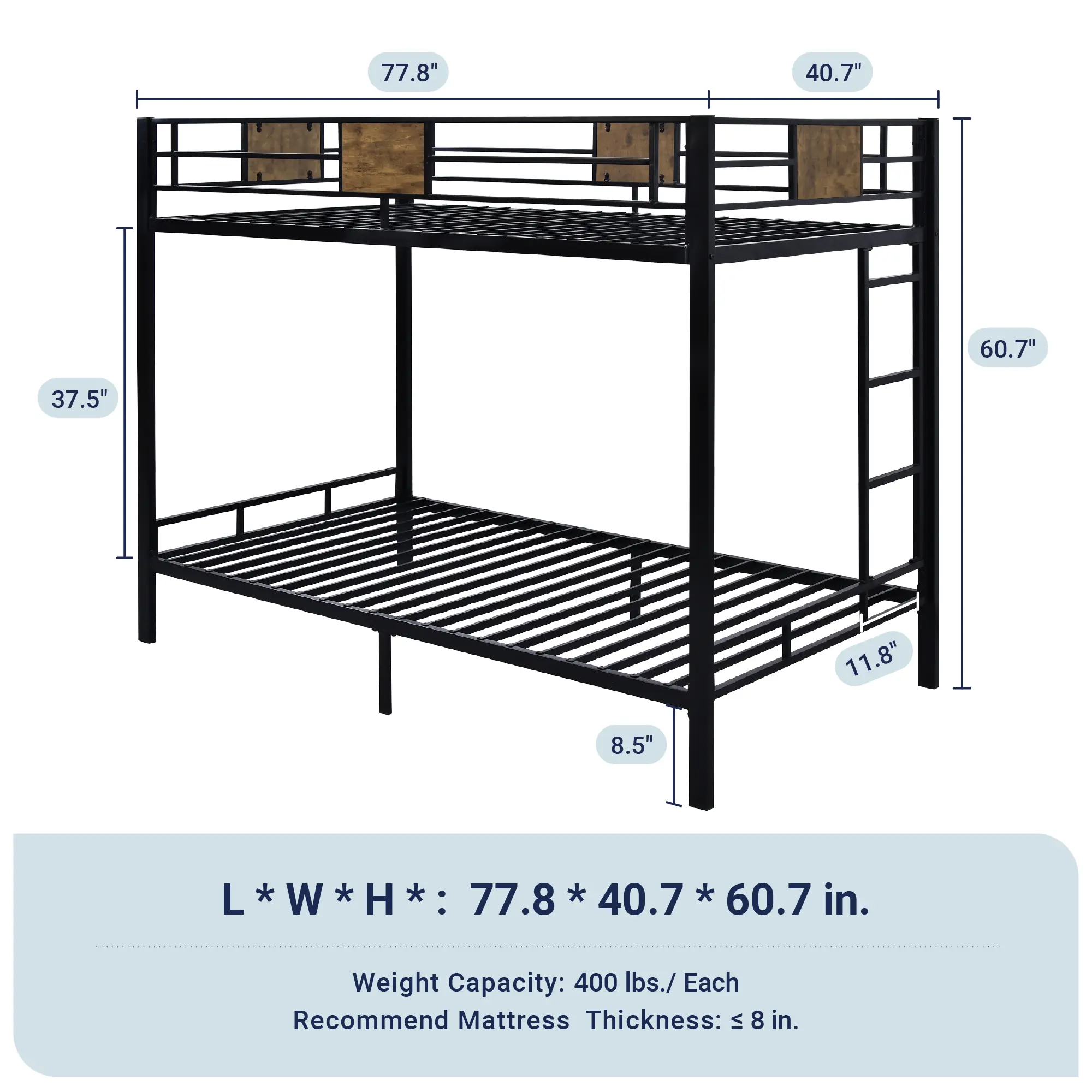Robust Construction: The square frame structure provides exceptional stability, supporting a maximum weight of 400 lbs. for a reliable and durable bunk bed experience