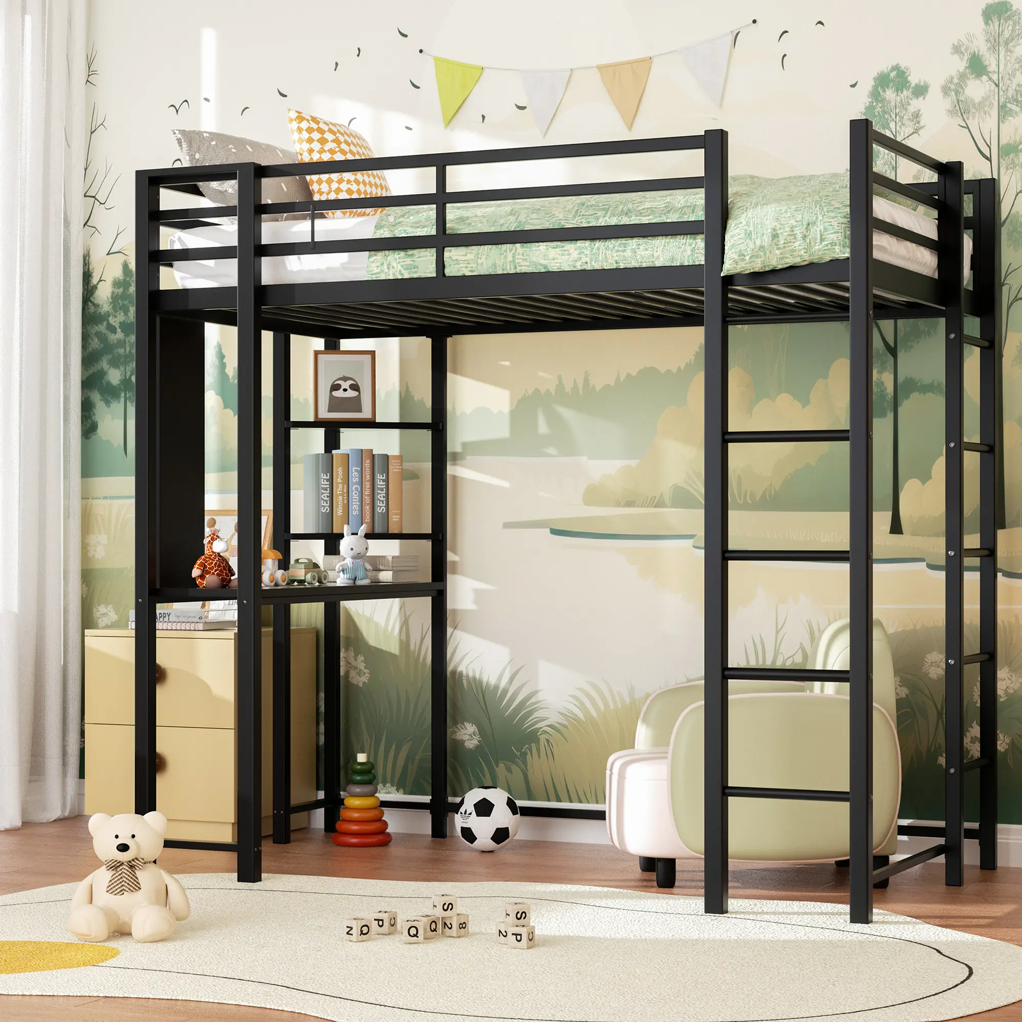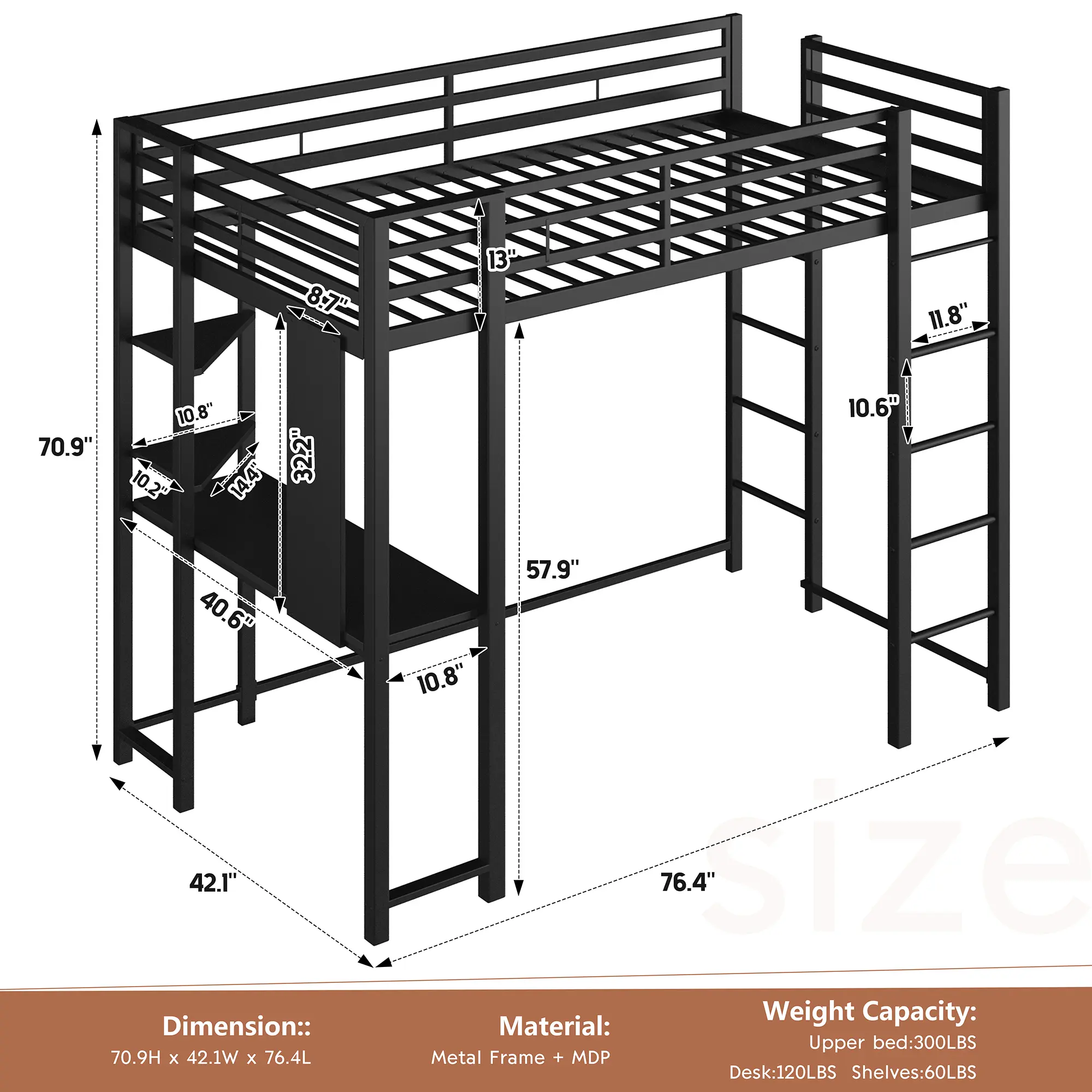 【Loft Bed with Desk】While satisfying the rest, the under-bed desk design provides a place or your child to study, work or play for kids, teens, and adults.