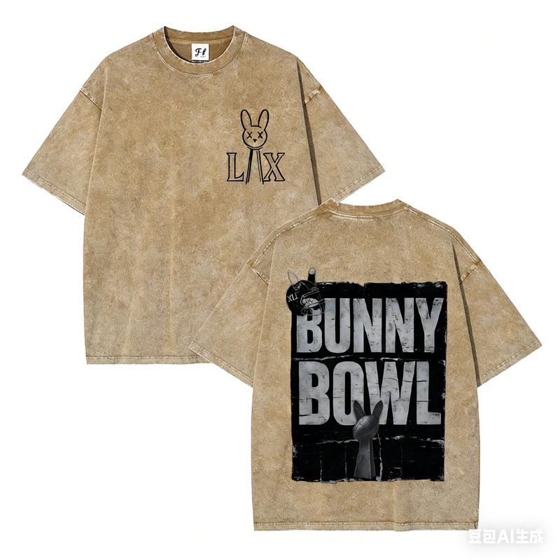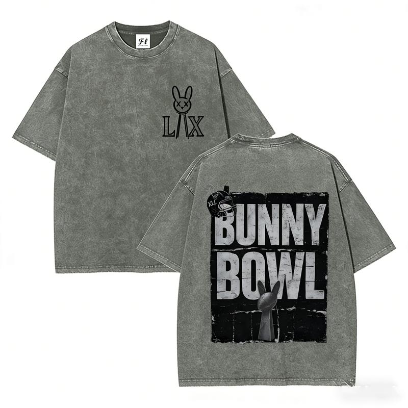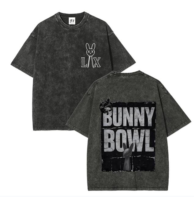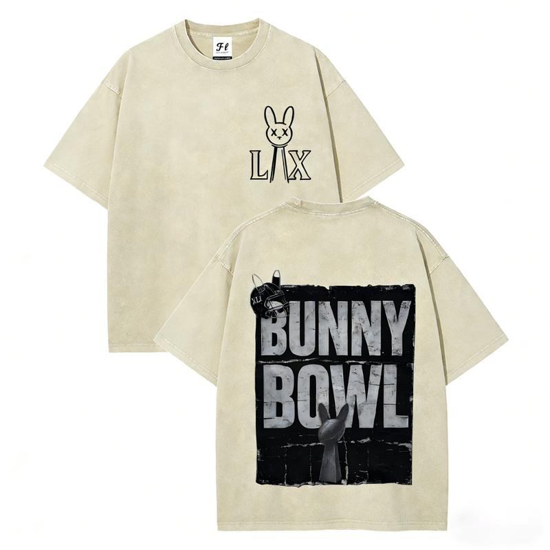 Bunny Bowl Football Style Washed T-Shirt Funny Sports Parody Design Casual Short Sleeve Tee