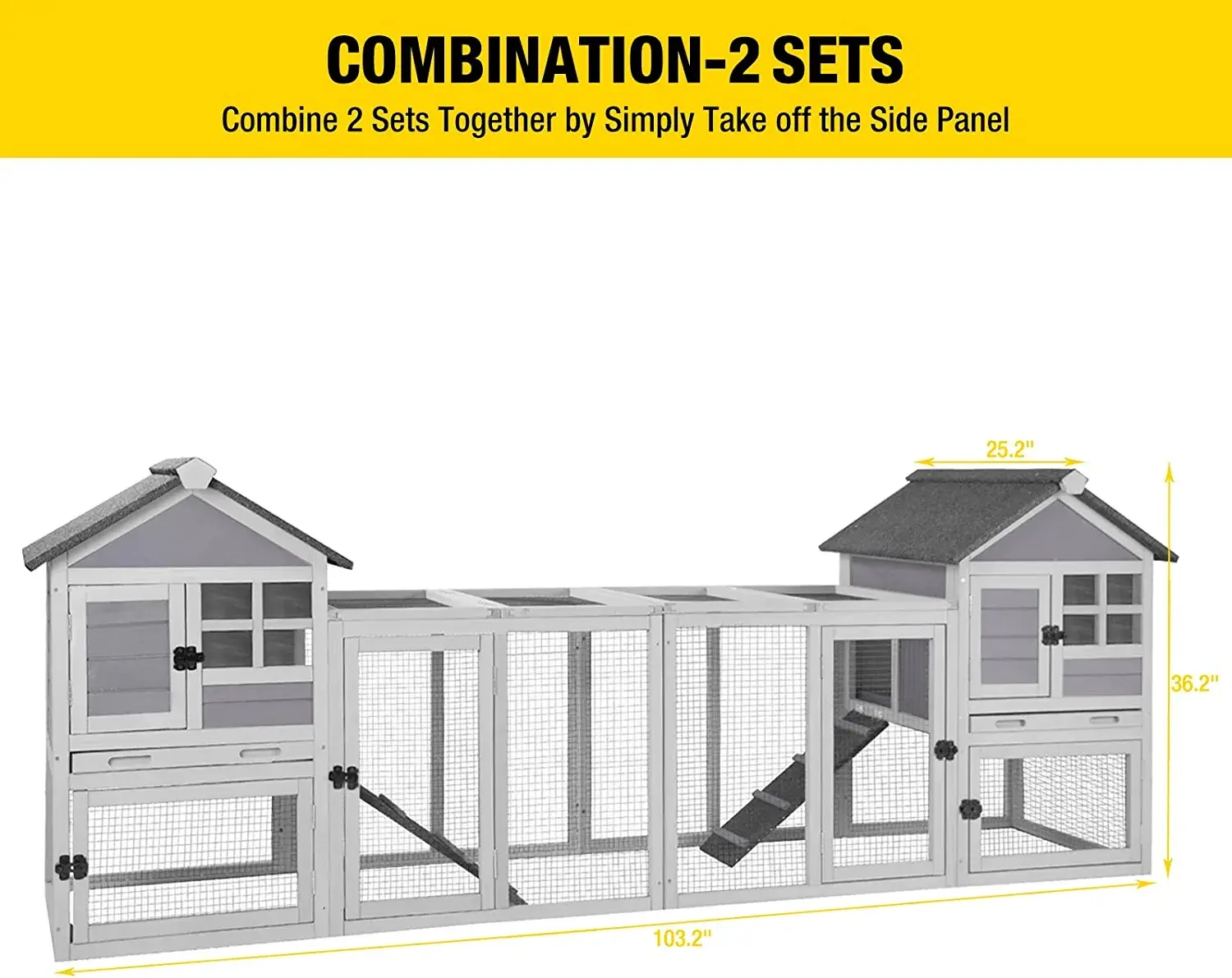 ·Fantastic Design-Connecting two cages to become extra-large bunny cages by taking off the side panel . Pls, note that the price in the store is for one cage. (Choose purchase 2 you need two hutches).