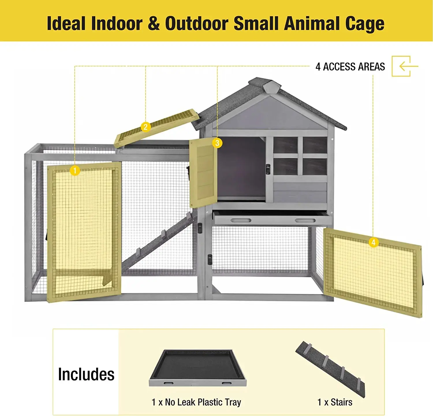 ·Easy Cleaning-Large access doors, opening run's roof and pull out no-leak deeper plastic tray for effortless cleaning.