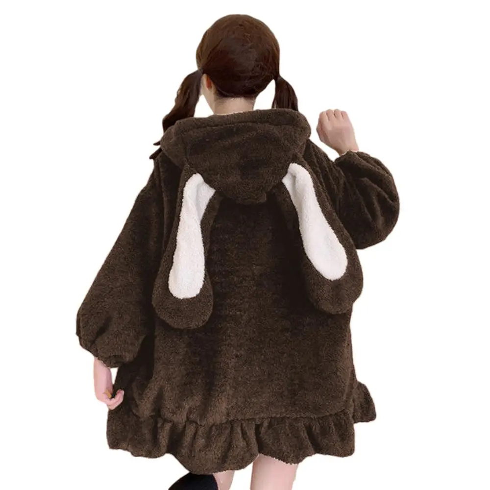 Danedvi Bunny Ear Hoodies For Women Sweet Lovely Fuzzy Fluffy Rabbit Sweater Tops Cosplay Jacket Coats Batwing Sweatshirt Winter