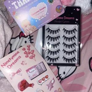 These lashes are so cuteee buyy ittttttt they are very worth it and feel like what its price is i tried them on and they look so cute!! I recommend Ninetynine lashes!! 🌷🩷 Only cons are that the shipping for me cost alot but They last long and they come with exactly 5