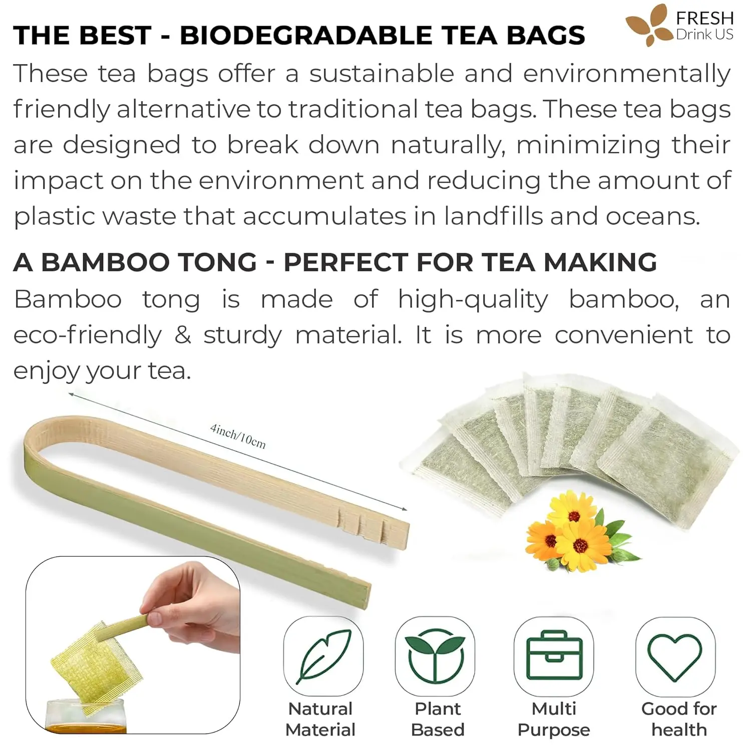 ·️ BIODEGRADABLE TEA BAG - NATURAL MATERIAL: The tea bags are made of natural corn fiber, which is friendly for the environment. No Strings. No Wrapped. No Staples. No Adhesive. No Bleach. No Dyes - 100% Safety.