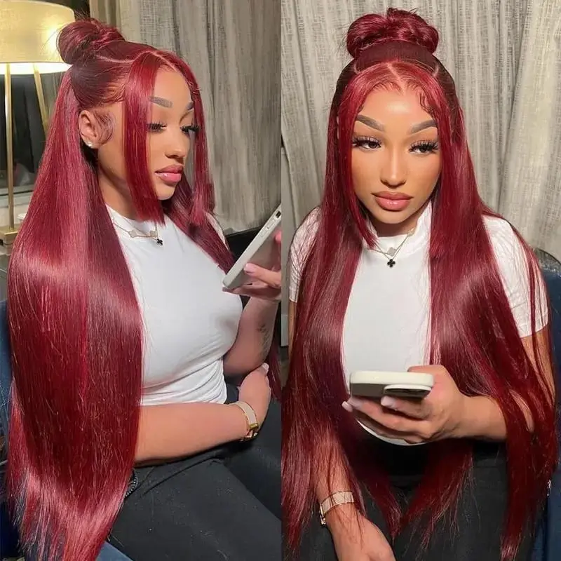 5. [BB Face] Burgundy 99J Lace Front Wig Straight 13x6 HD Lace Frontal Wig Human Hair For Women Pre Pluched Colored Lace Wig 180% Density
