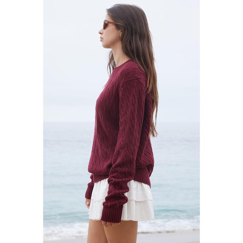 John Galt Women's Burgundy Cable Knit Sweater