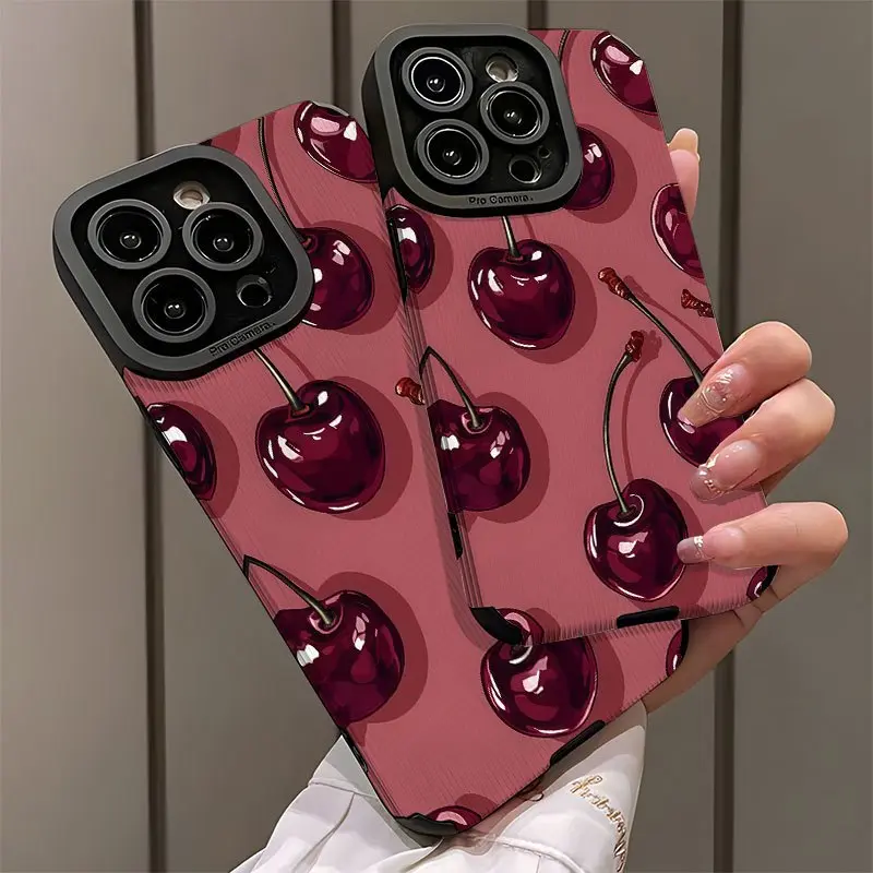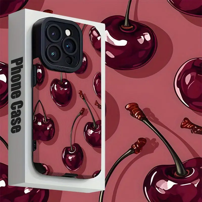 Burgundy Cherry Pattern Printed Phone Case for Iphone 16/16 Plus/16 Pro/16 Pro Max/Iphone 15/15 Plus/15 Pro/15 Pro Max/Iphone 14/14 Plus/14 Pro/14 Pro Max/Iphone 13/13 Pro/13 Pro Max/Iphone 12/12 Pro/12 Pro Max/Iphone 11/11 Pro/11 Pro Max, Shockproof, Dir