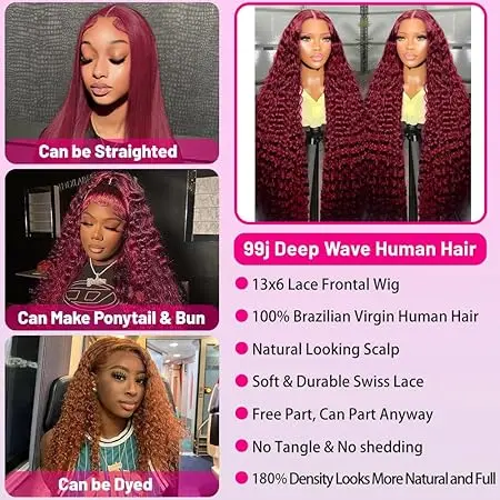 i loveeee this burgundy wig 🥰 the deep wave curls are so bouncy and the color is very pretty. the 13x6 lace front gives a super natural look, and the density is perfect. plus it's surprisingly affordable AND ships fast