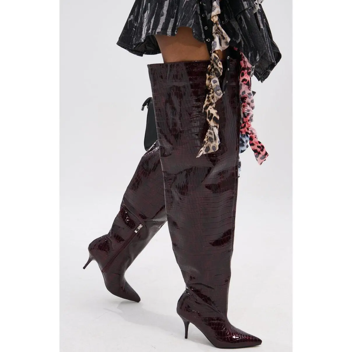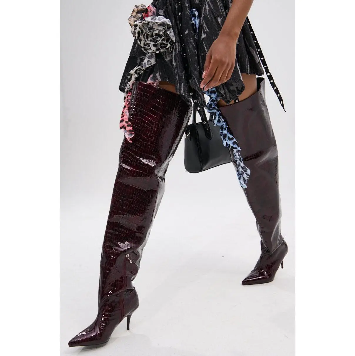 These boots are nothing short of stunning! They feature a fabulous heel length. The color and pattern make a powerful statement. They will stand out in any wardrobe. I do have one concern when wearing these boots, I noticed that they tend to rub against each other between the thighs. Only discomfort