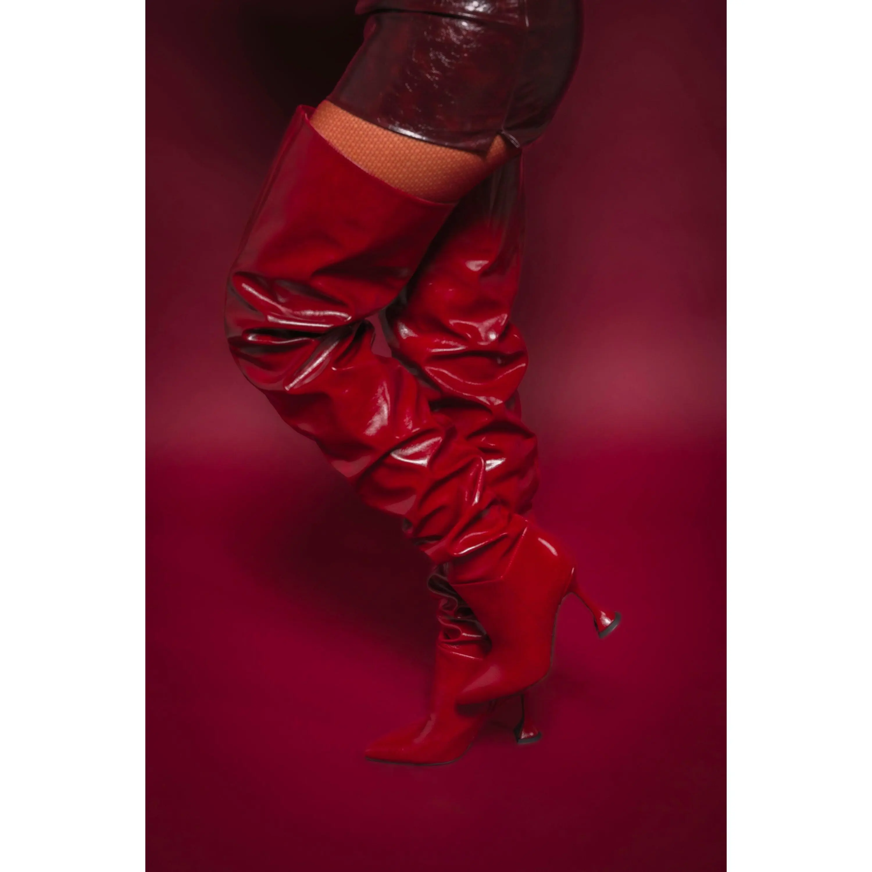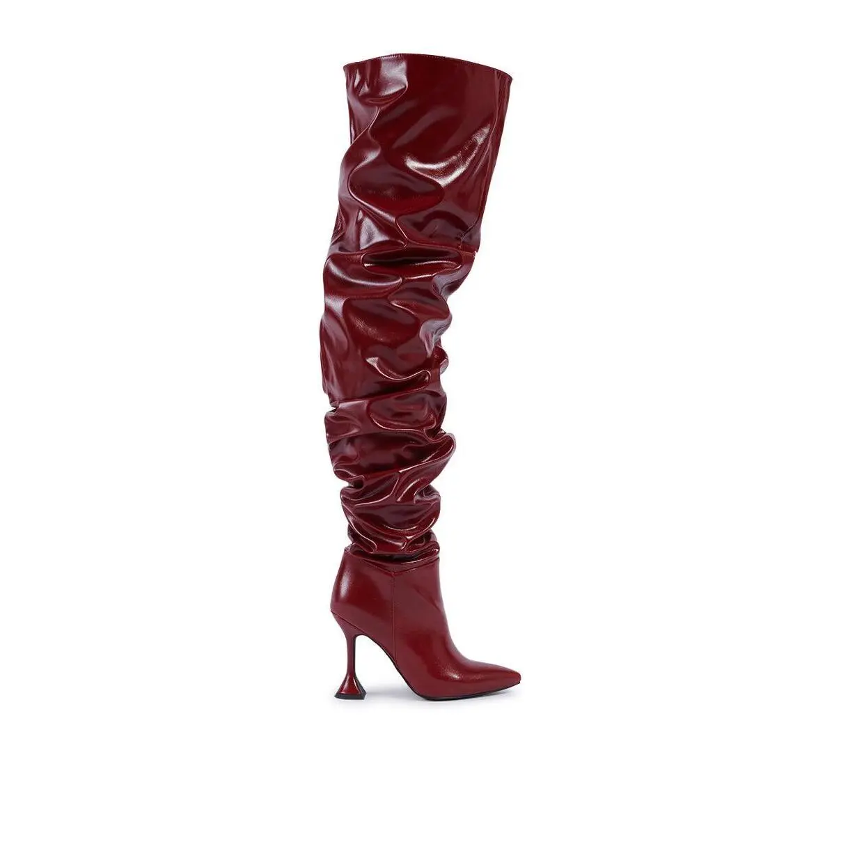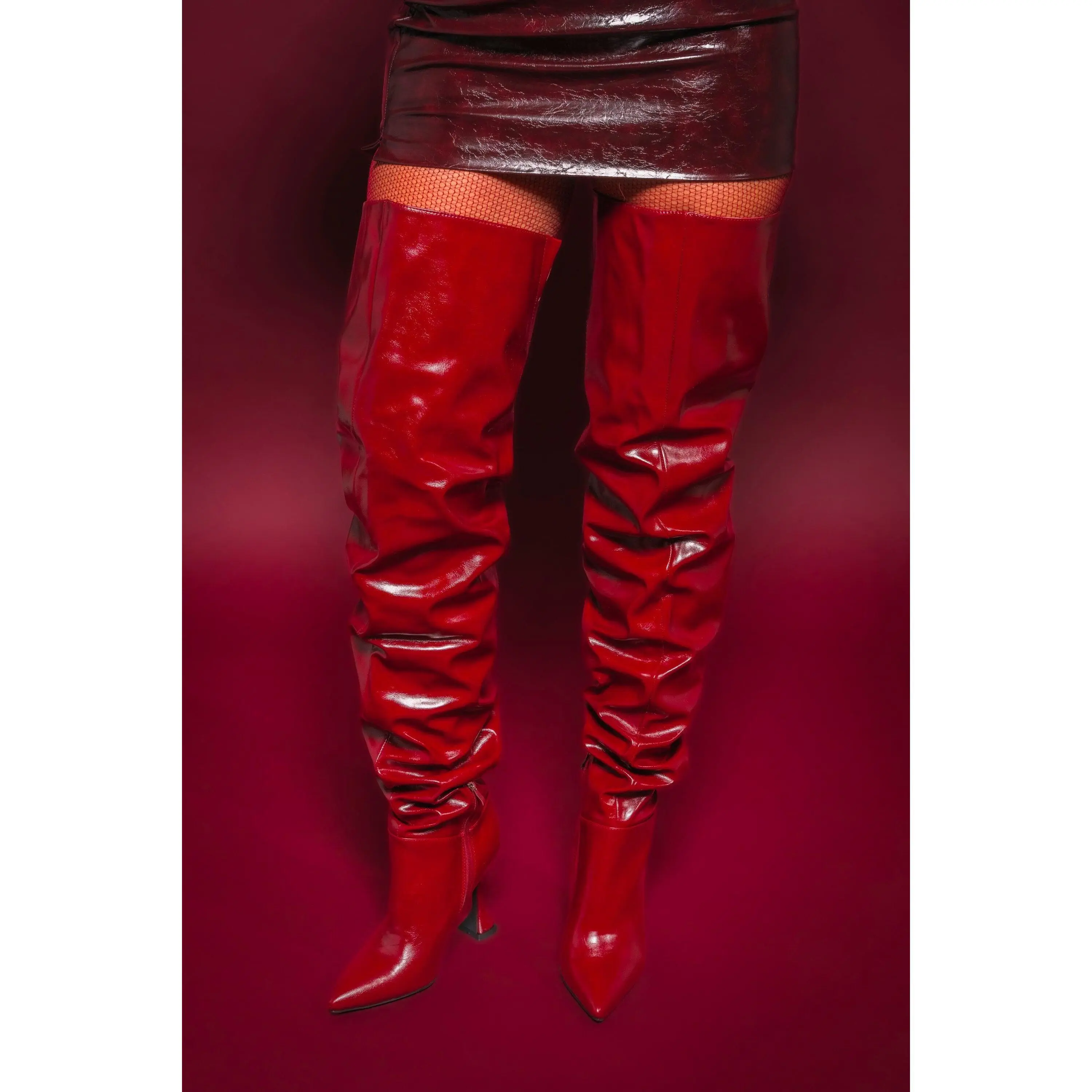 The sky’s the limit in The AZALEA WANG Stephan Burgundy Boot. These baddies are crafted from sleek, shiny faux leather and feature an extremely tall shaft that hits just below the hip. They’re complete with a pointed toe, an inner ankle zip closure, and a uniquely sculpted, flared stiletto heel. Pair them with a leather mini dress for an irresistibly vampy finish. - Faux Leather Upper- Pointed Toe- Sculpted/Flared Stiletto Heel- Slight Stretch- Imported(all measurements approximate from size 7.5)- 4” Heel Height - 32.5” Shaft Height- 21” Shaft Opening Circumference - 11” Calf Circumference Product ID: 436481
