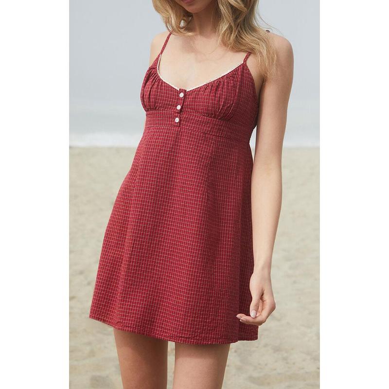5. John Galt Women's Burgundy Plaid Embry Mini Dress