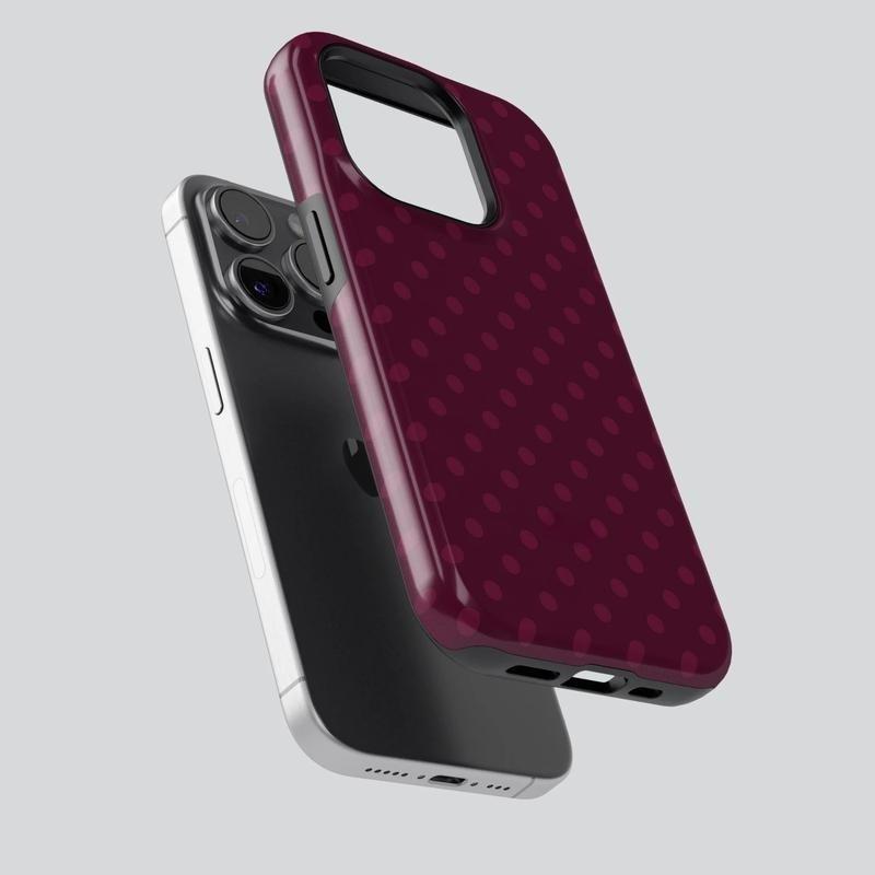 Burgundy Polka Dot Phone Case, Suitable for IPhone17 ProMax, 16Promax, Pro, Plus, 15, 14, 13,12. Stylish Design, Shockproof Protective Case, Smartphone Case, Phone Cover, Gift