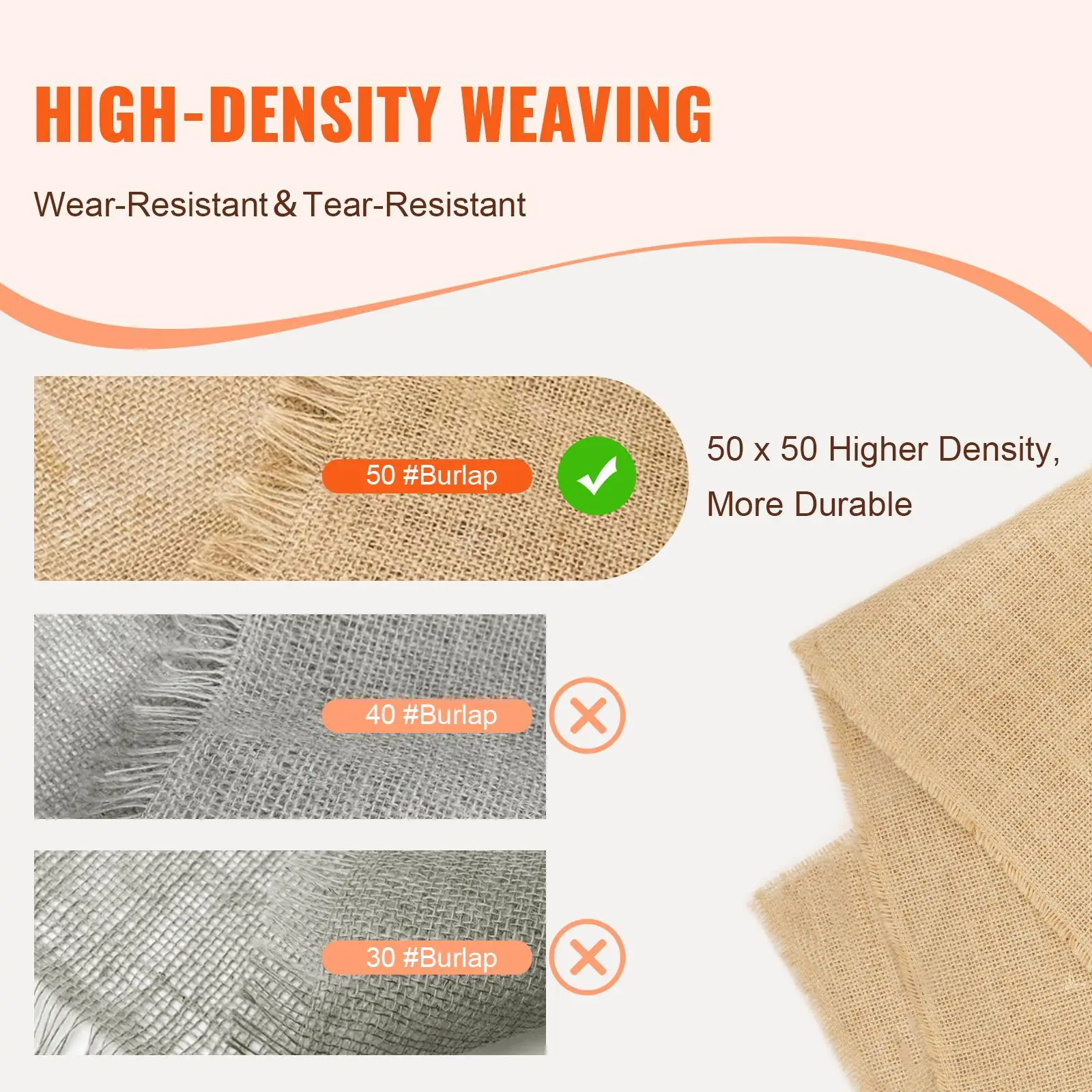 • Sturdy and Durable: This burlap fabric roll is not just a decorative piece; it's a reliable companion. With a solid density of 50 x 50 and a weight of 270 g, it's built to last. It avoids wearing and tearing, giving you a beautiful look for your decoration without worrying about quick deterioration.