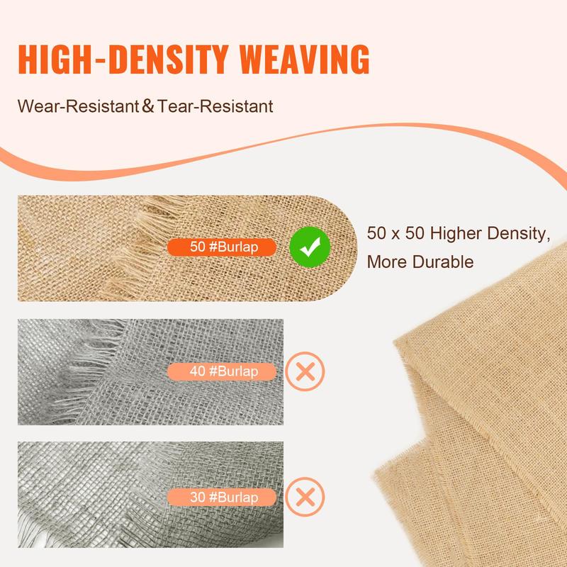5. VEVOR Burlap Fabric Roll, 40” x 30 ft & 50 x 50 High Density Wide Natural Burlap Fabric Rolls, Jute Fabric Burlap Tree Wrap Roll, for Decor, Crafts, Wedding, Gardening, Plant & Tree Winter Covering