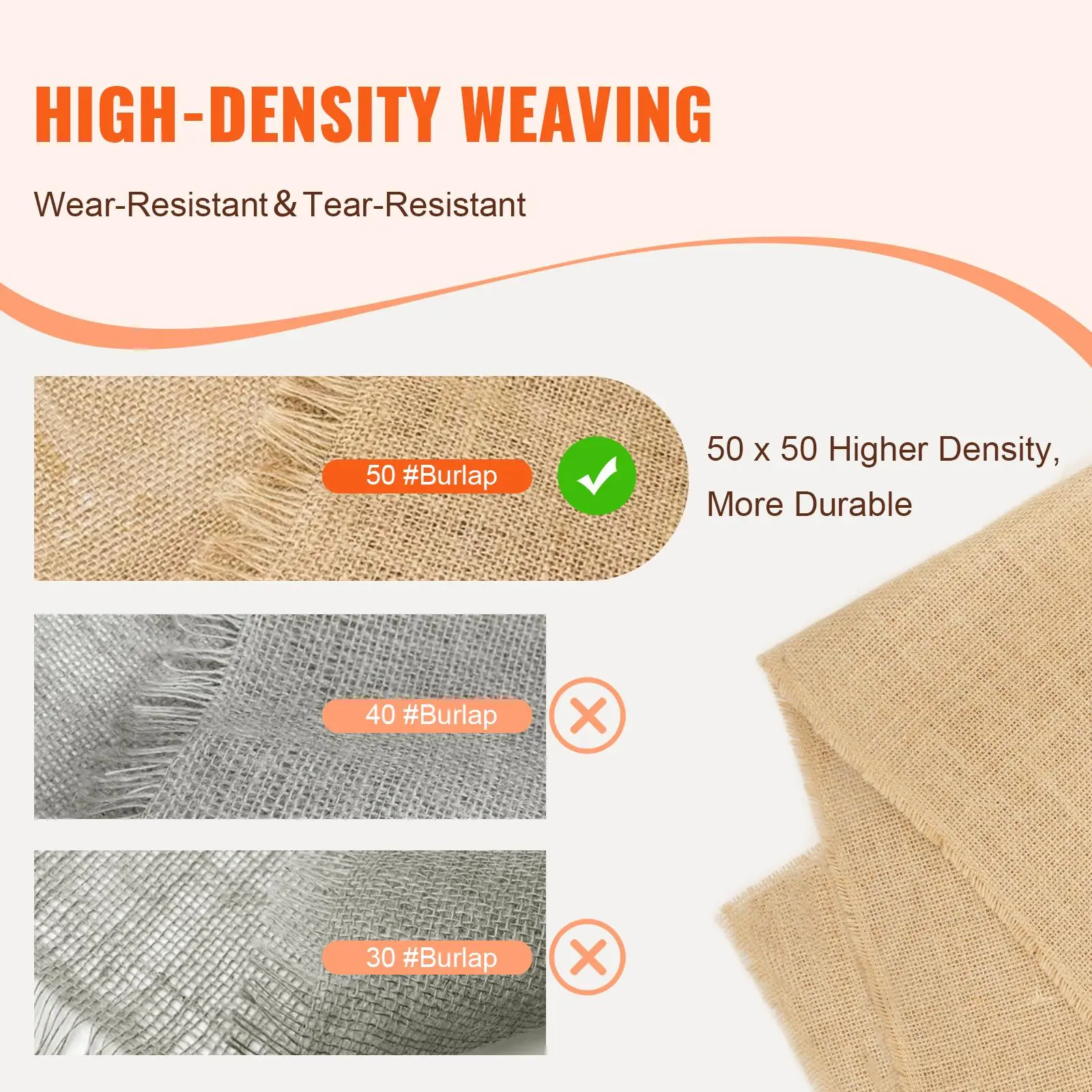 • Sturdy and Durable: This burlap fabric roll is not just a decorative piece; it's a reliable companion. With a solid density of 50 x 50 and a weight of 270 g, it's built to last. It avoids wearing and tearing, giving you a beautiful look for your decoration without worrying about quick deterioration.