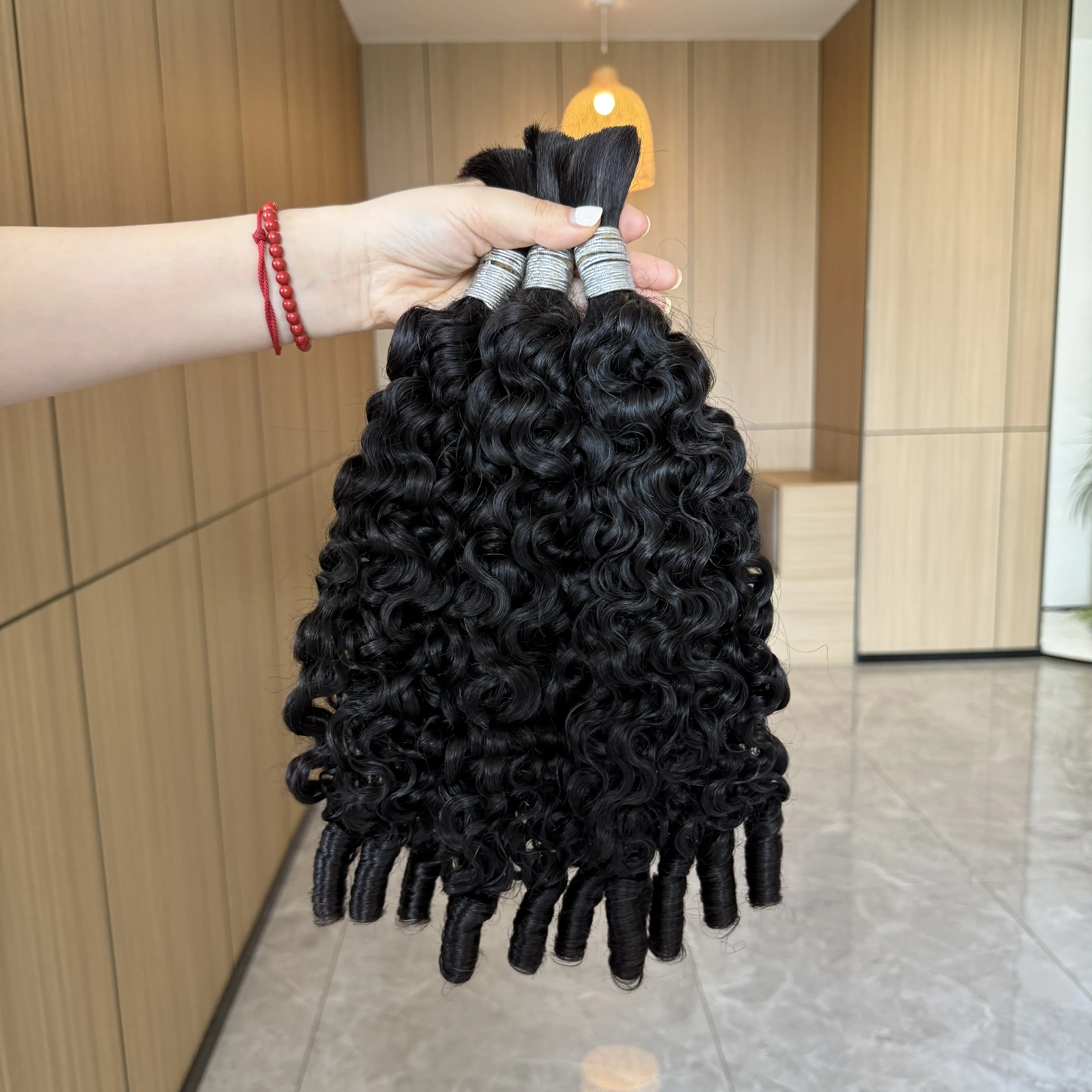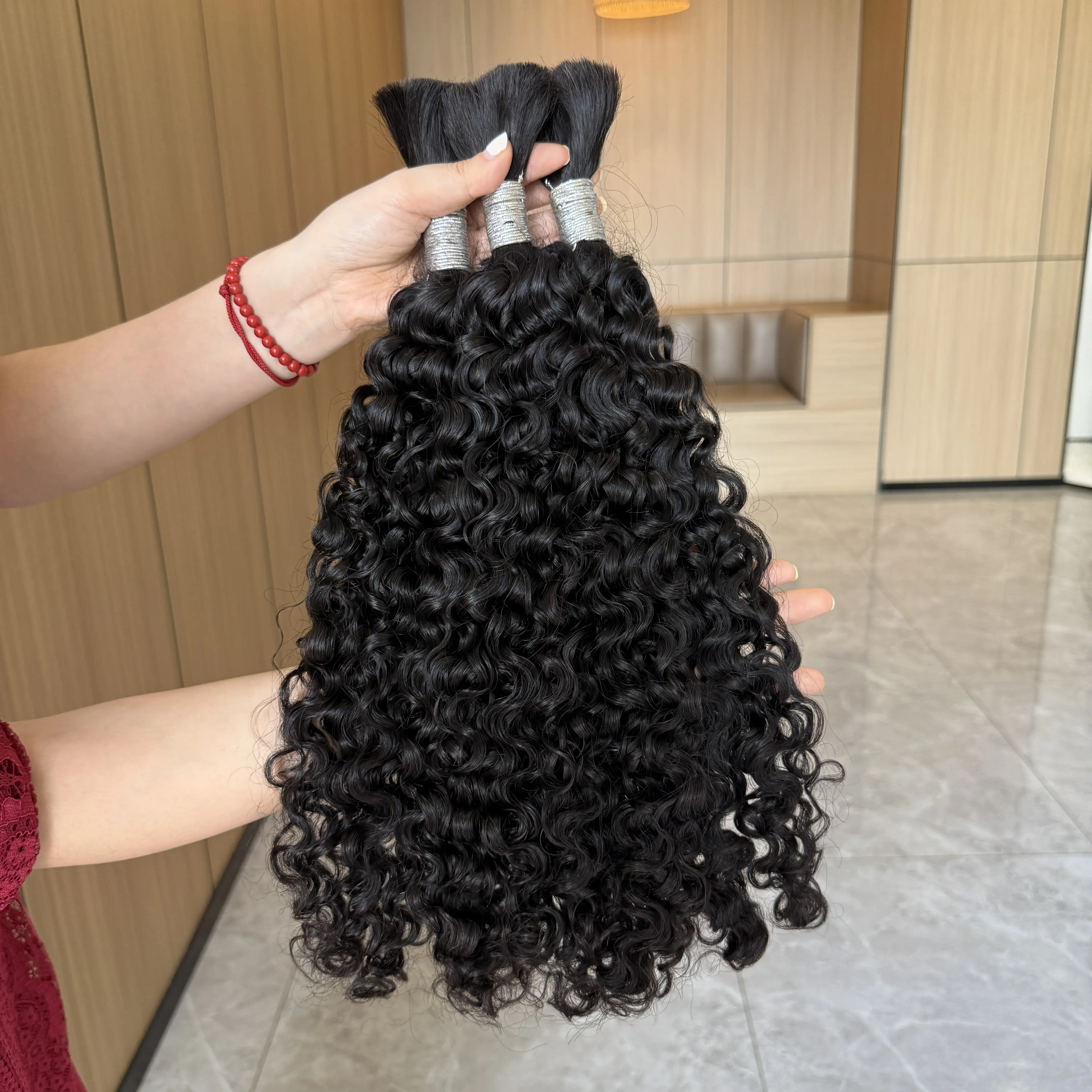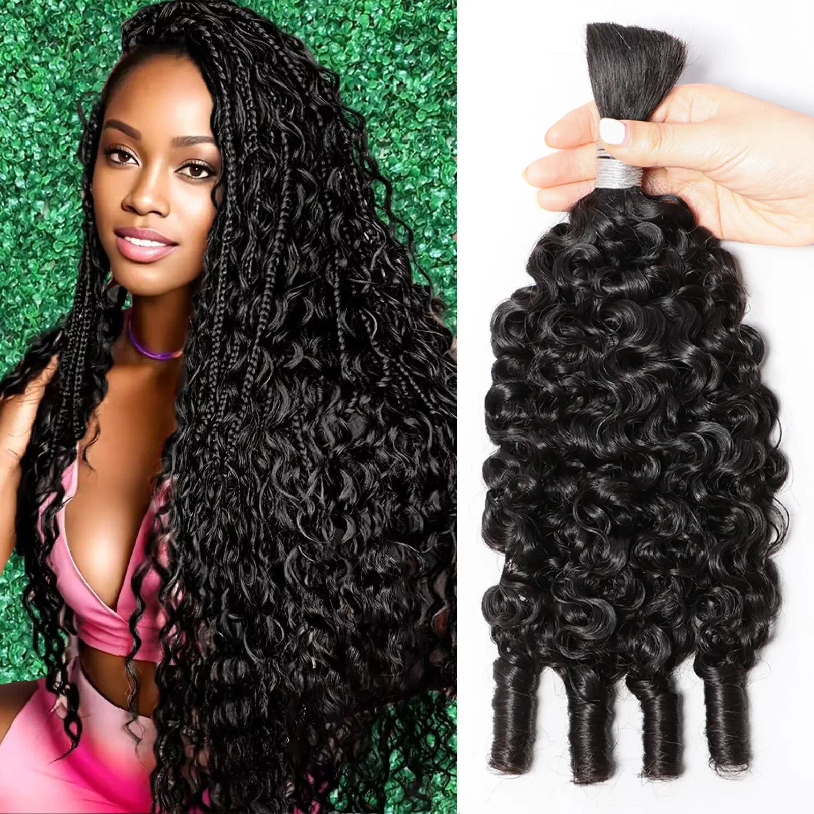The hair is beautiful!! I added all 3 bundles of the 28 inch Burmese curly and it’s full how I like it. Very light weight. I washed the hair before I installed it and the original curl dropped but they make these beautiful coils. Perfect vacation hair. Will be my go to bulk hair for my boho braids.
