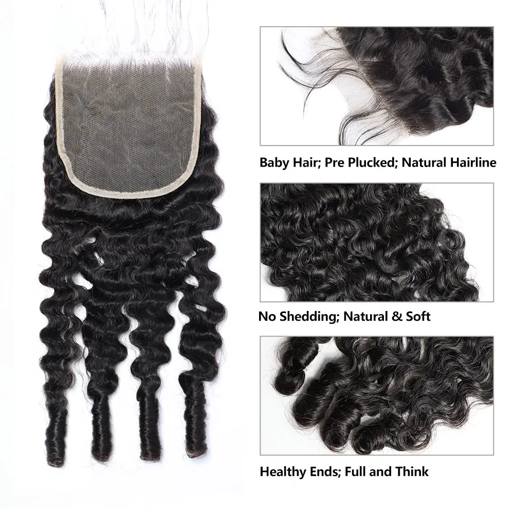 Burmese Curly Lace Closure 5x5 4x4 HD Transparent Lace 100% Virgin Human Hair Burmese Curly with Spiral Ends Lace Closure Free Part 15A Virgin Human Hair Extensions 180% Density Closure Pre Plucked Natural Black Color