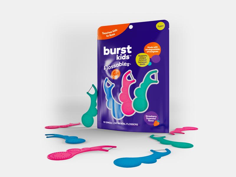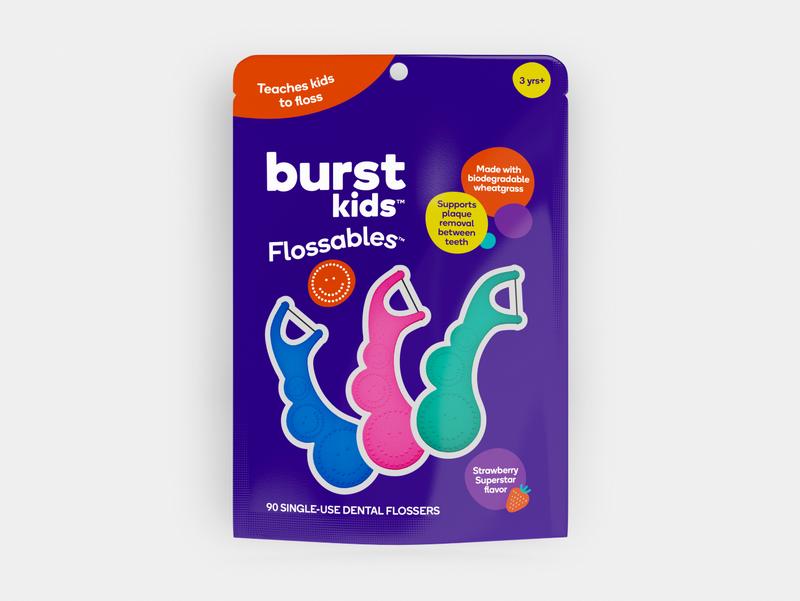 Developed with BURST's community of 40,000+ dental professionals, Flossables are easy to use and come in a delicious strawberry flavor. With a cute grippy smiley face design and fun colors, they help keep kids' teeth clean and instill good dental habits early on.