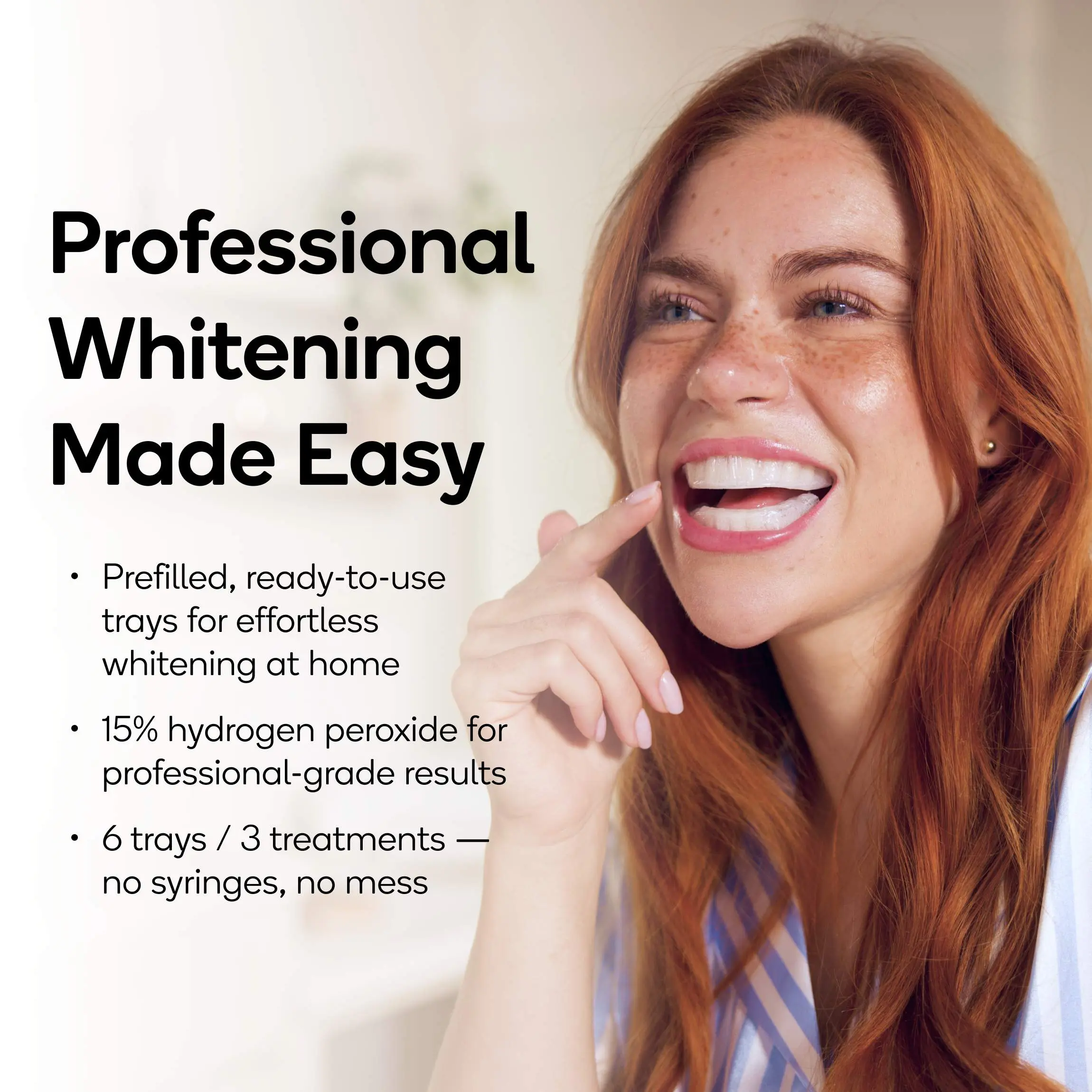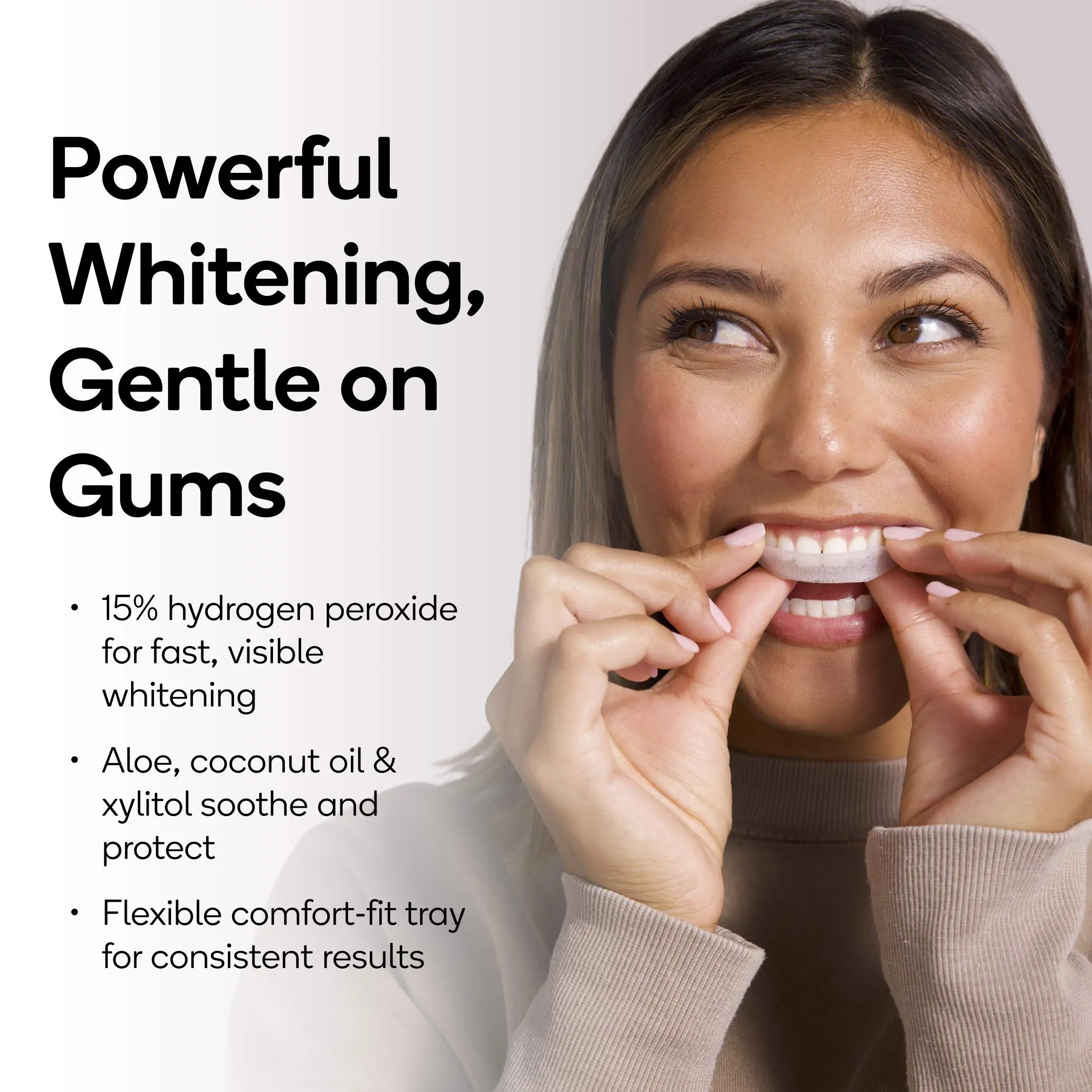 Our squeaky-clean, ingredient-packed formula is infused into a flexible, custom-fit tray that’s prefilled and ready to deliver the ultimate at-home whitening experience.