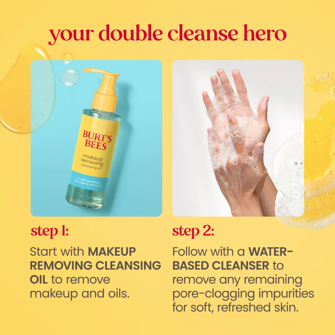 Create your own Burt’s Bees Double Cleansing Routine and save 10% with this bundle of Makeup Removing Cleansing Oil and Skin Balancing Gel Cleanser. Start with Makeup Removing Oil to melt away makeup and SPF. Follow with Skin Balancing Gel Cleanser, a water-based cleanser, to remove water-soluble impurities like dirt and sweat. This gentle cleanser effectively cleanses while maintaining the skin’s barrier. You'll also get a FREE Burt’s Bees Moisturizing Lip Balm—a classic fave that keeps your lips hydrated for 24-hours