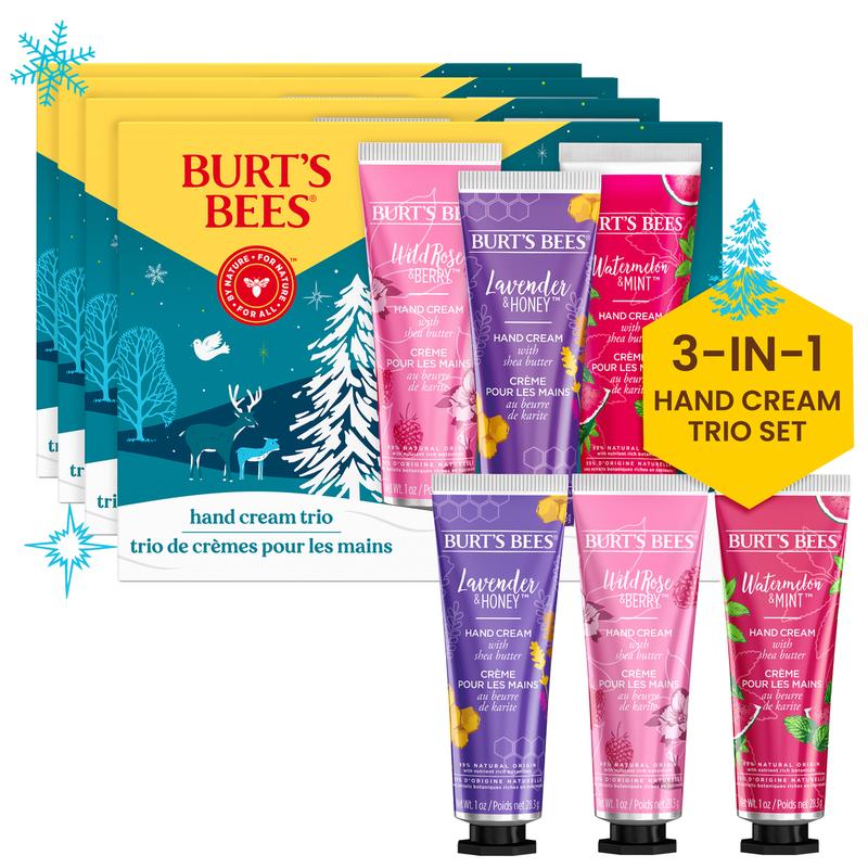 ·One 3-count package of the Burt's Bees Hand Cream Trio Gift Set includes deliciously scented hand lotion in a beautifully packaged holiday gift