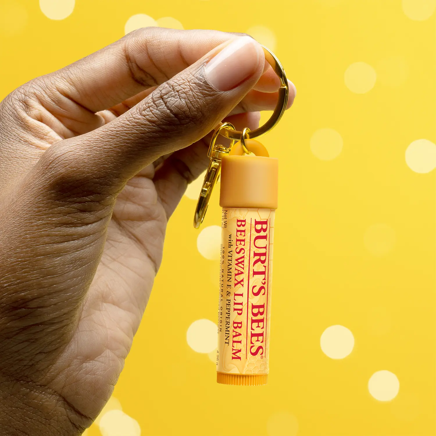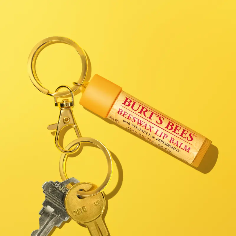 Never forget your lip balm again! The official Burt’s Bees keychain is here. This 1" gold metal ring plus cap and claw clip makes it a perfect lip accessory for you to keep your favorite Burt's Bees balm close on the go to keep your lips smooth, supple and moisturized.