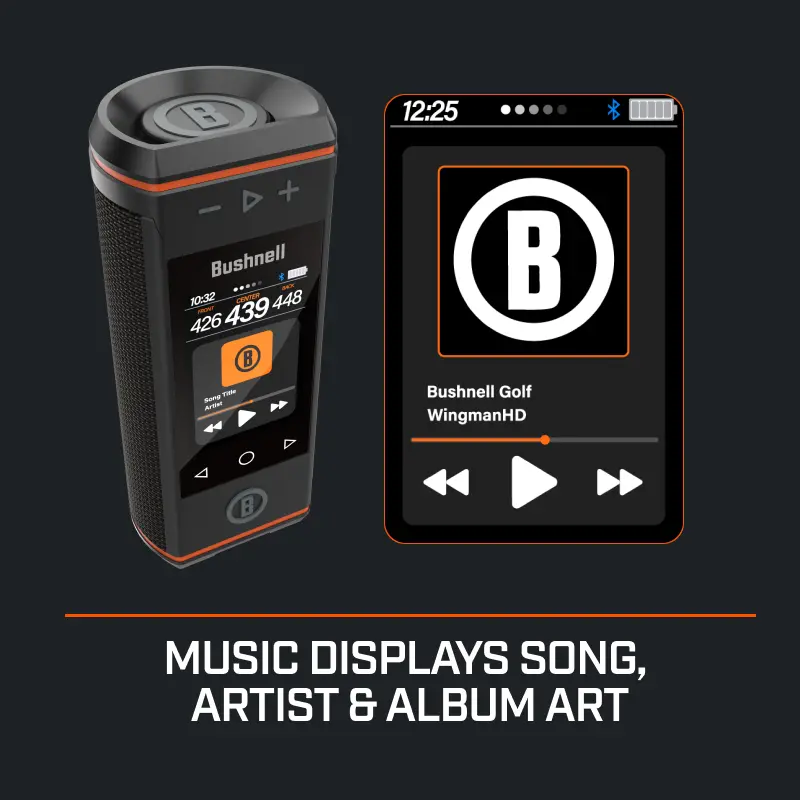 The Bushnell Wingman HD is a great addition to the golf cart. The sound quality is clear and loud, the GPS yardages are quick and accurate, and the magnet holds it securely in place. Battery life easily lasts a full round. Perfect if you want music and fast distances on the course.