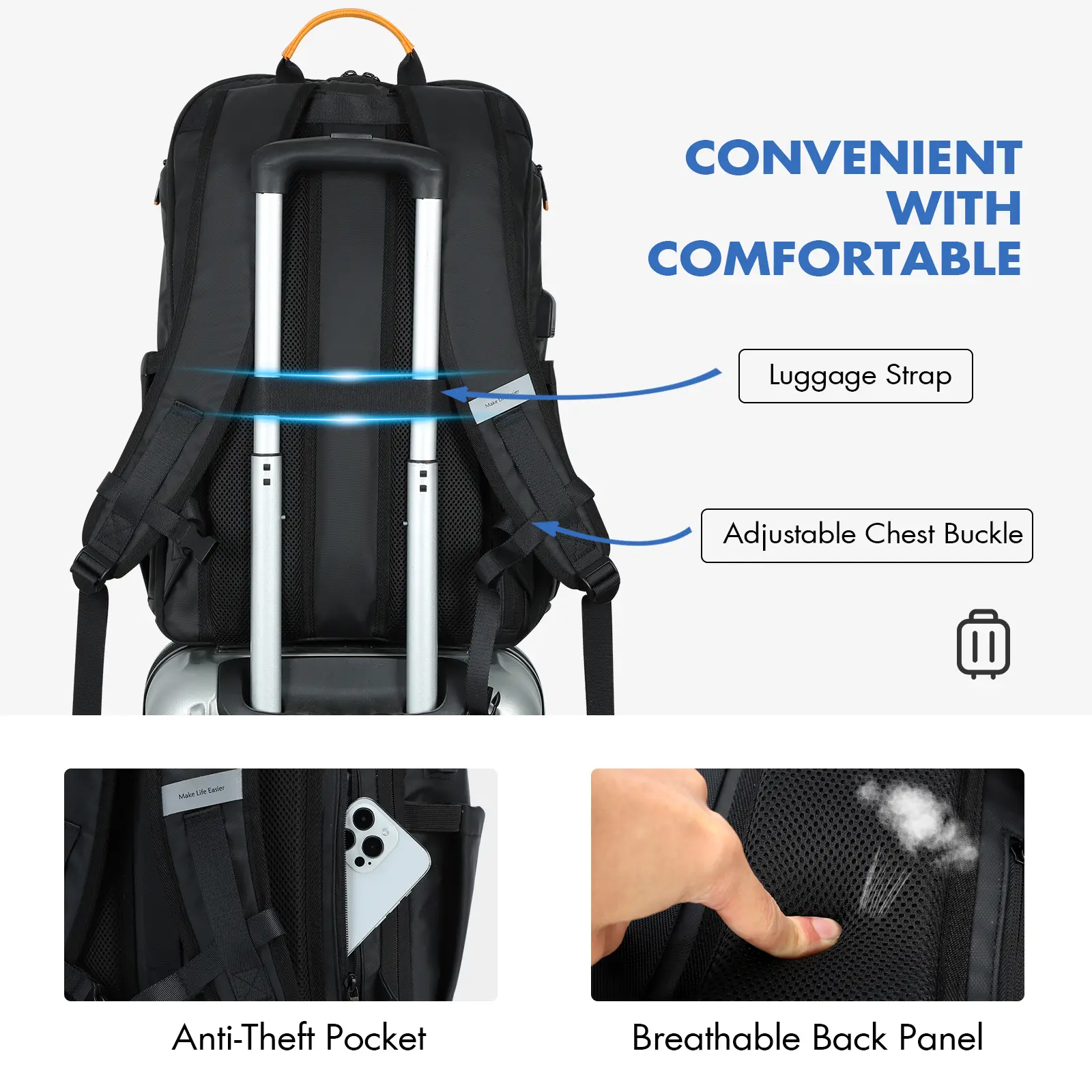 ·Enhanced Design - This smart backpack has a muti-functional design for a better experience; Ergonomic designed back increase breathability and comfort, padded shoulder straps including straps to hang sunglasses, special anti-theft pocket for protection, a chest strap to distribute the weight, and luggage strap for easier transportation