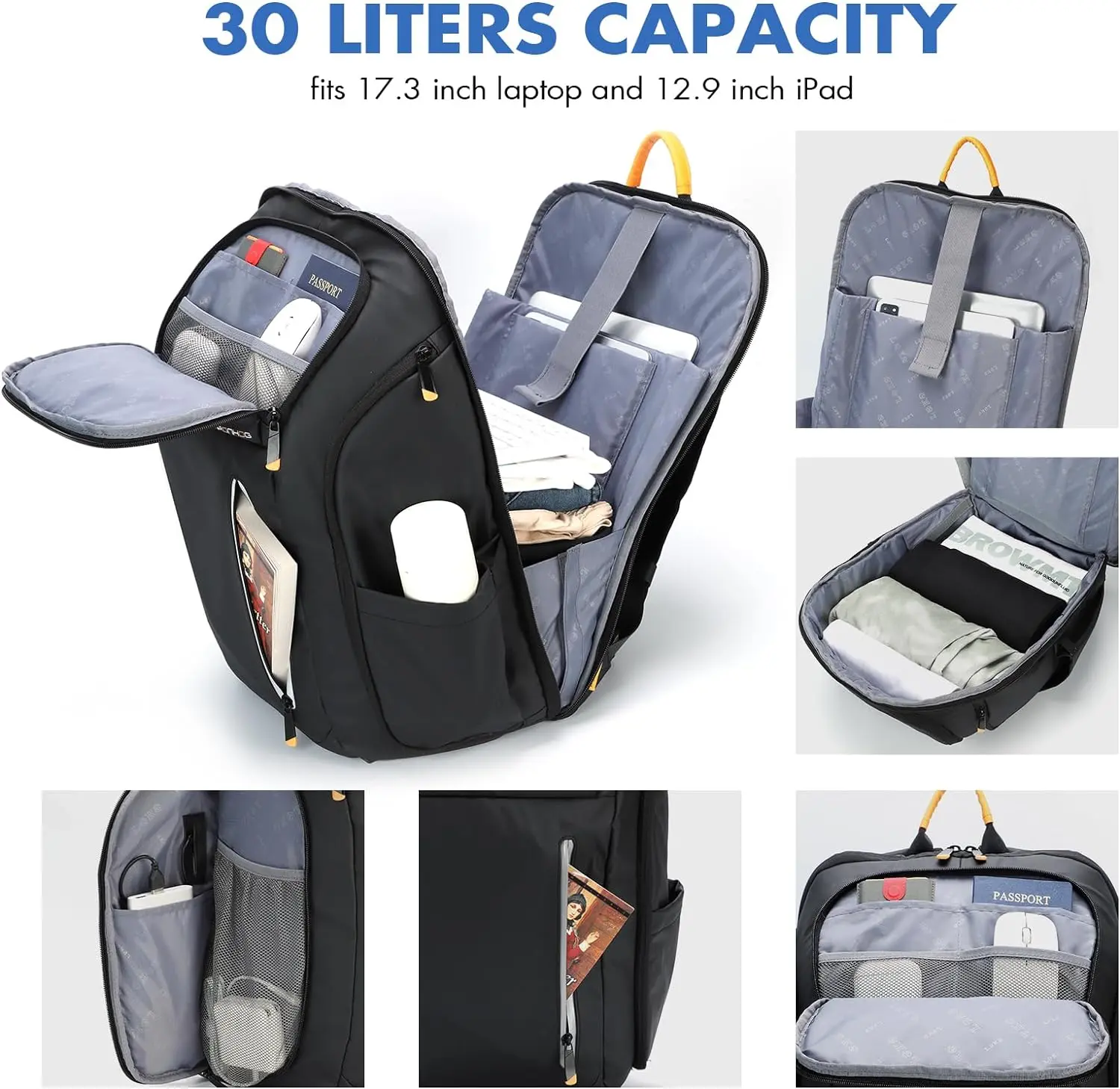 ·LARGE CAPACITY - With a large 30L capacity, our business backpack is perfect for carrying all your essentials; Main compartment with 2 dedicated pockets, easily fits a up to 17.3 inch laptop; two front pocket for quick access, two side compartment with each side pocket for power bank and bottles