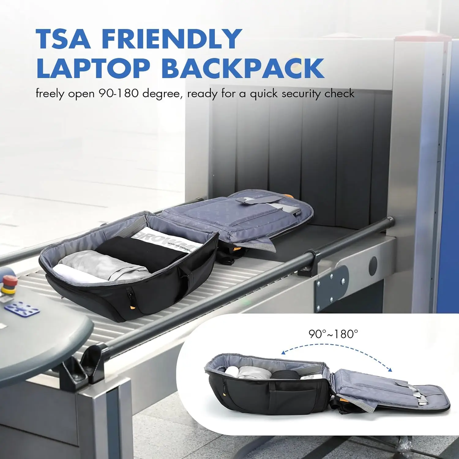 ·TSA FRIENDLY DESIGN - Our tech backpack is designed with the modern traveler in mind, freely open 90-180 degrees; It is flight approved size, allowing you to breeze through airport security without any hassle, suit for most airlines including budget airlines; The USB charging port enables you to conveniently charge your devices on the go