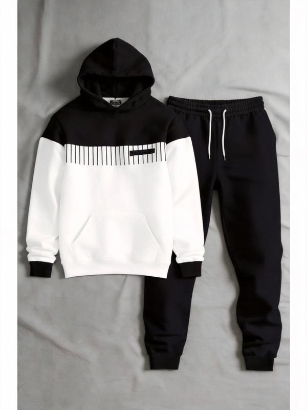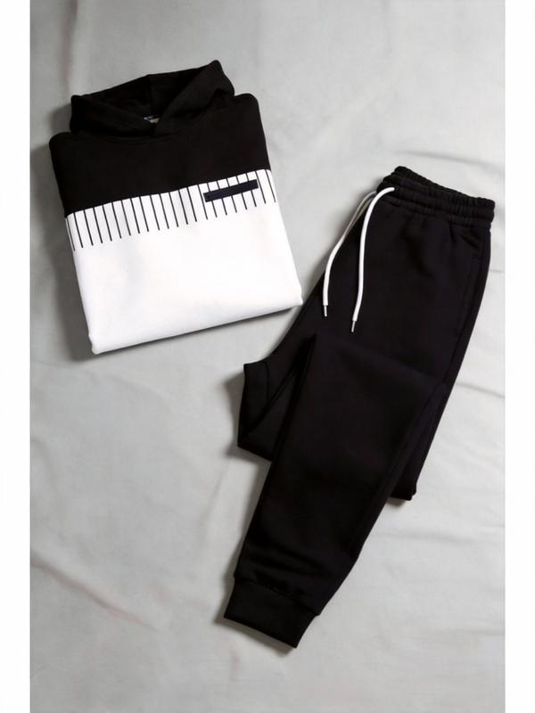 This set includes a hoodie and matching pants, perfect for business casual wear. The hoodie features a simple design with a black and white color block. It's ideal for men seeking a versatile outfit. The long sleeve suit is convenient for everyday use. The set is labeled as 25115 Gamis Wetsuit, indicating its unique style.