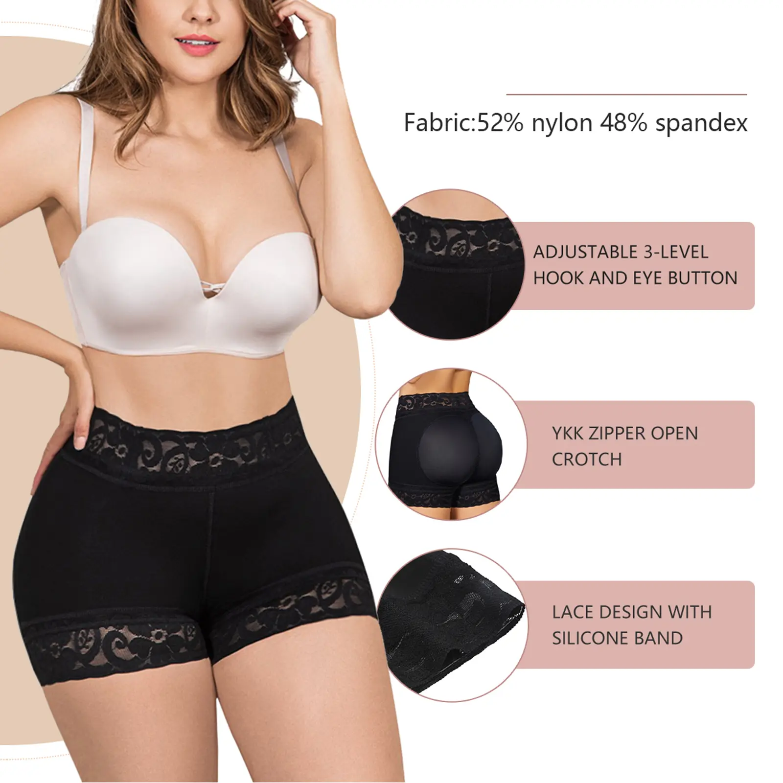 NON-SLIP FIT: This shapewear adds 4 pieces of cartilage around the waist to provide greater support for the waist and prevent the formation of unsightly fat rings due to uneven stress. It also prevents slipping. Faja shorts have silicone strips added to the inside of the lace at the waist and thighs to prevent curling problems when worn for a long time.