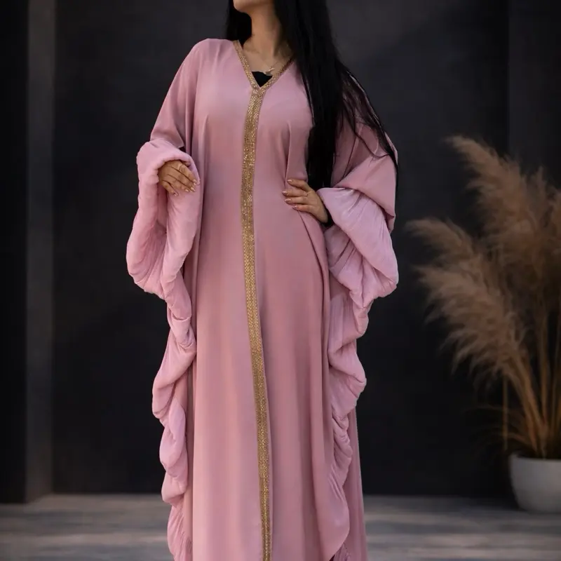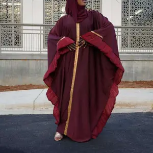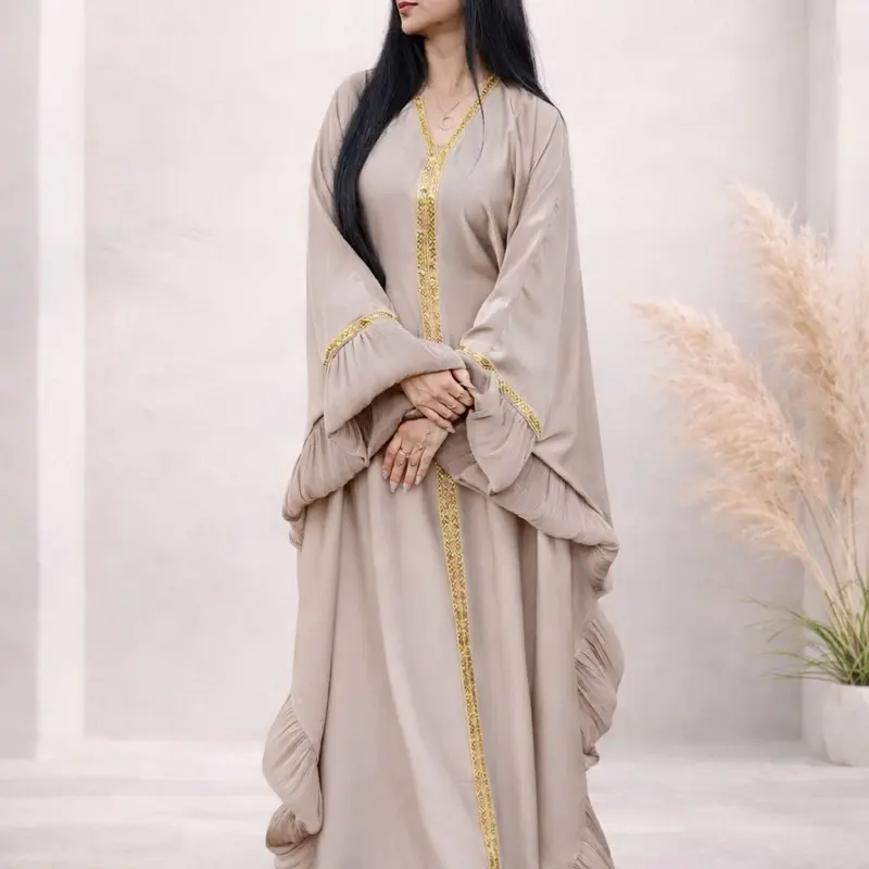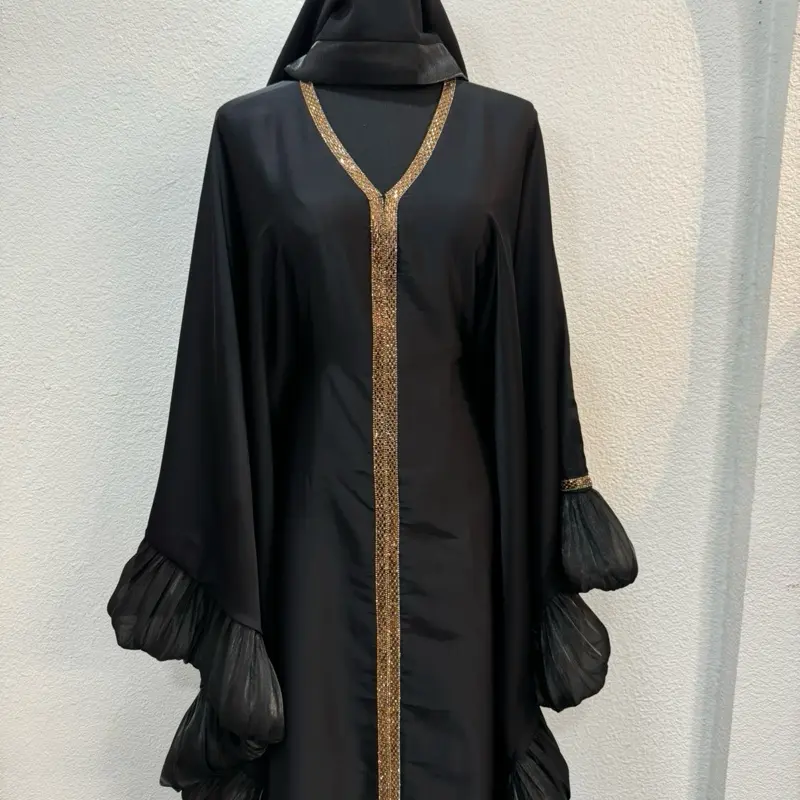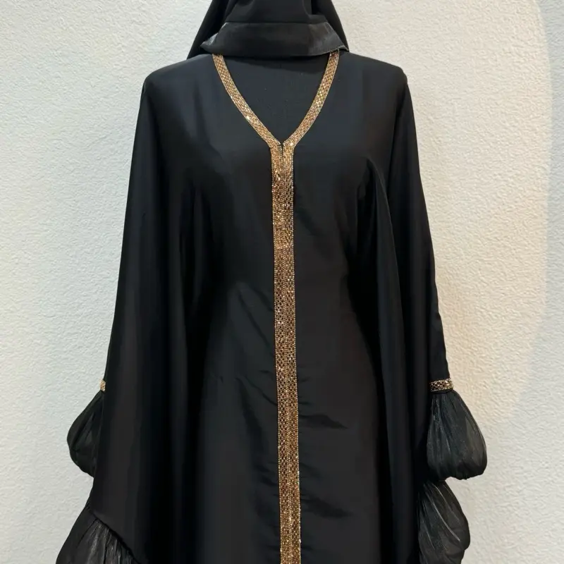 Dubai Butterfly Style Abaya - Color with Gold Embellishments and Hooded Design