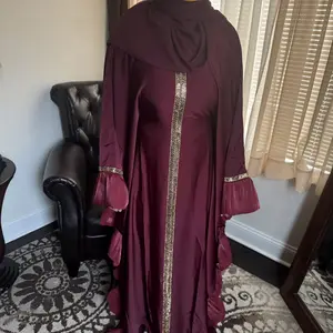 I love it. Great quality true to size. Can wear it with or without the belt /open or closed and comes with matching chiffon hijab. Will definitely be buying more from this seller. Thank you