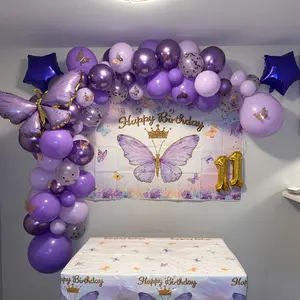 Butterfly Pink/PurpleBalloon Tablecloth Backdrop Set,94pcs Pink Butterfly Latex Balloon Girls Birthday Party Decoration,Happy Butterfly Birthday Balloon Decor