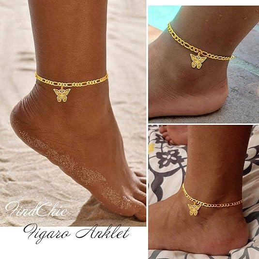 5. FindChic Butterfly Anklets Dainty Golden Charm Figaro Chain Ankle Bracelet Footwear Summer Beach Jewelry for Women Girlfriend Girl