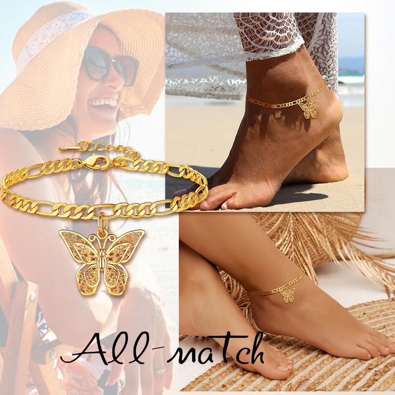 FindChic Butterfly Anklets for Girlfriend Woman Gift Idea, 8.5" to 10.5inch Dainty Gold-Plated Cute Charm Figaro Chain Ankle Bracelets Barefoot Summer Jewelry #FindChic#@FindChic #TikTokShopSummerSale #Karunasreview #karunastips #episode113#karunacollections #