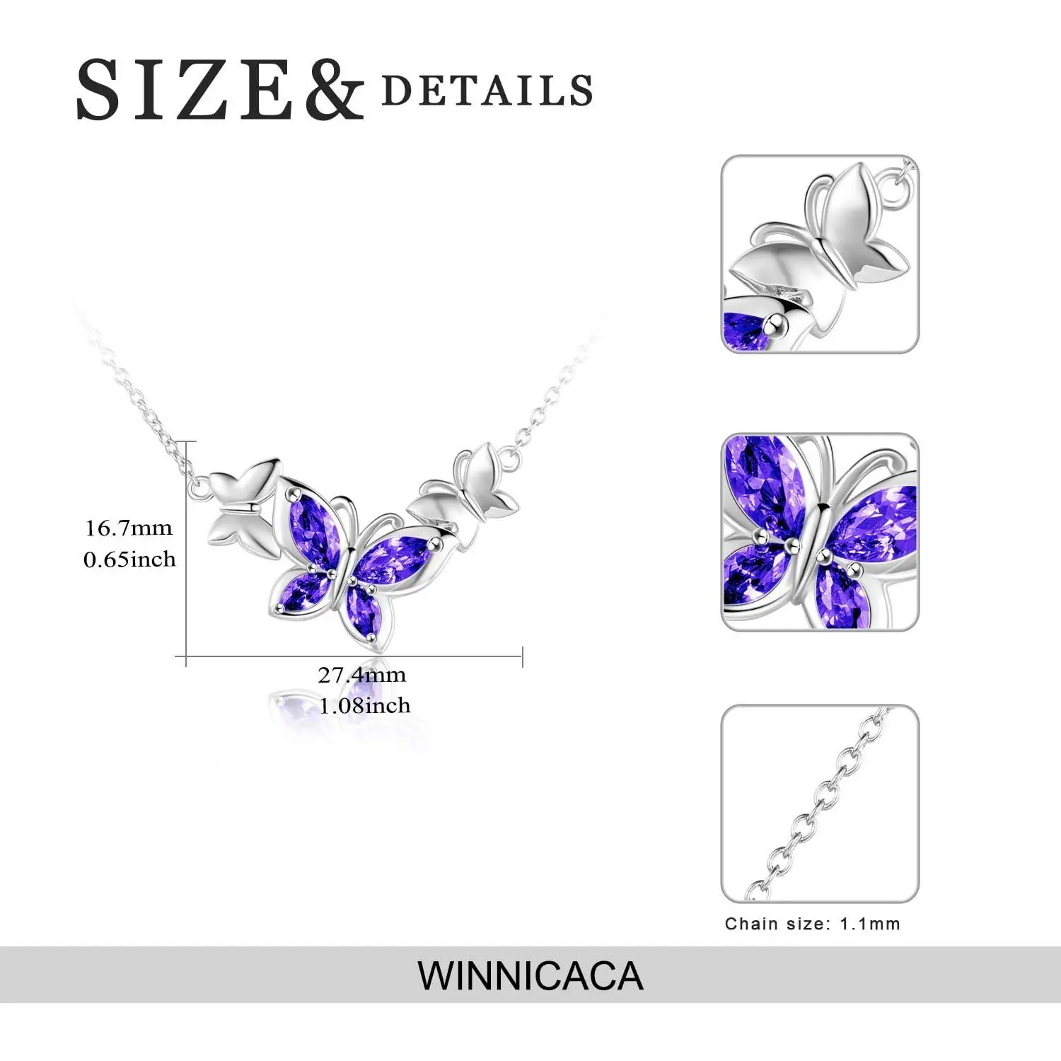 ❤CHAIN SIZE❤: The length of s925 sterling silver necklace is 18+2 inch.Butterfly pendant size is 1.08*0.65Inch.It can be adjusted to fit every customer.